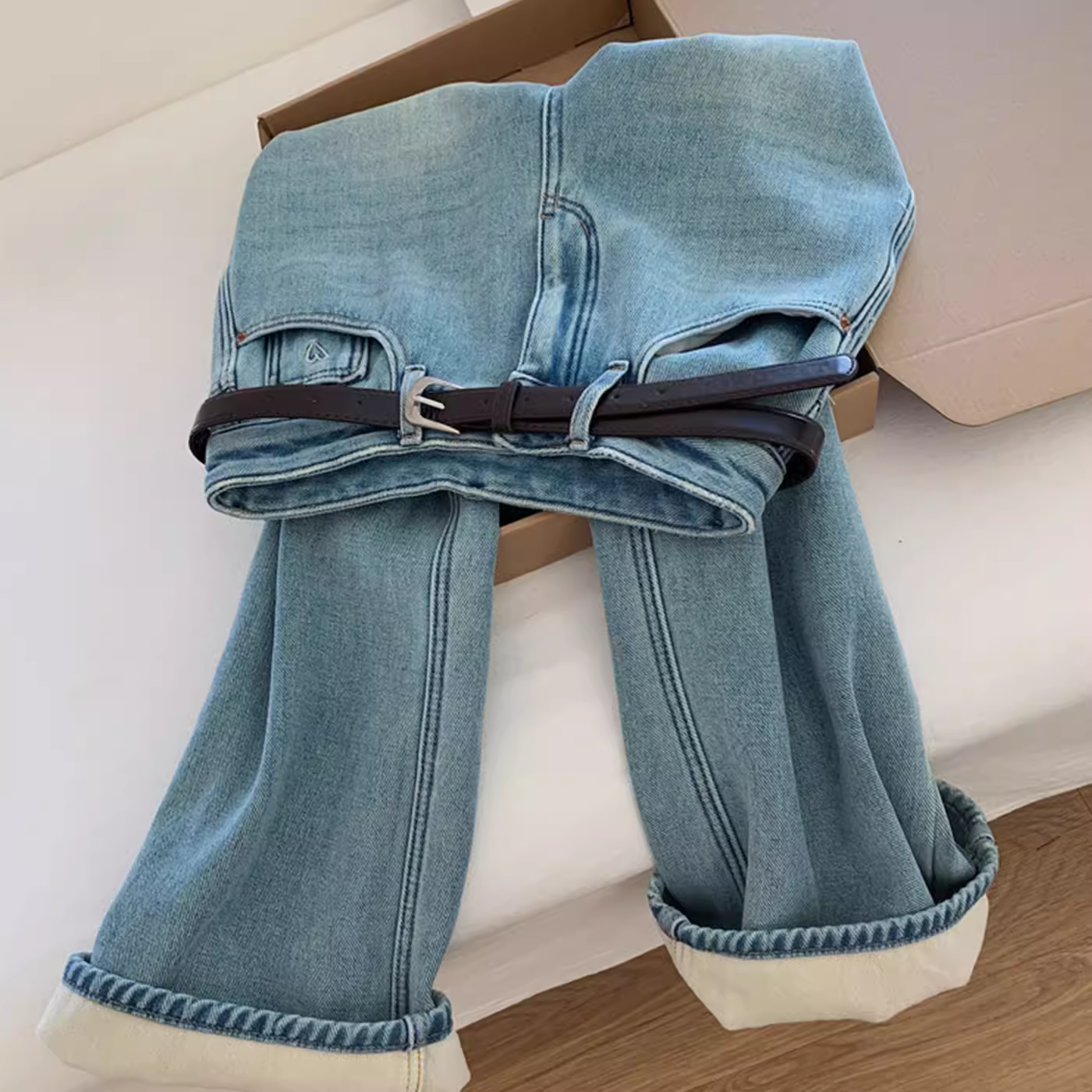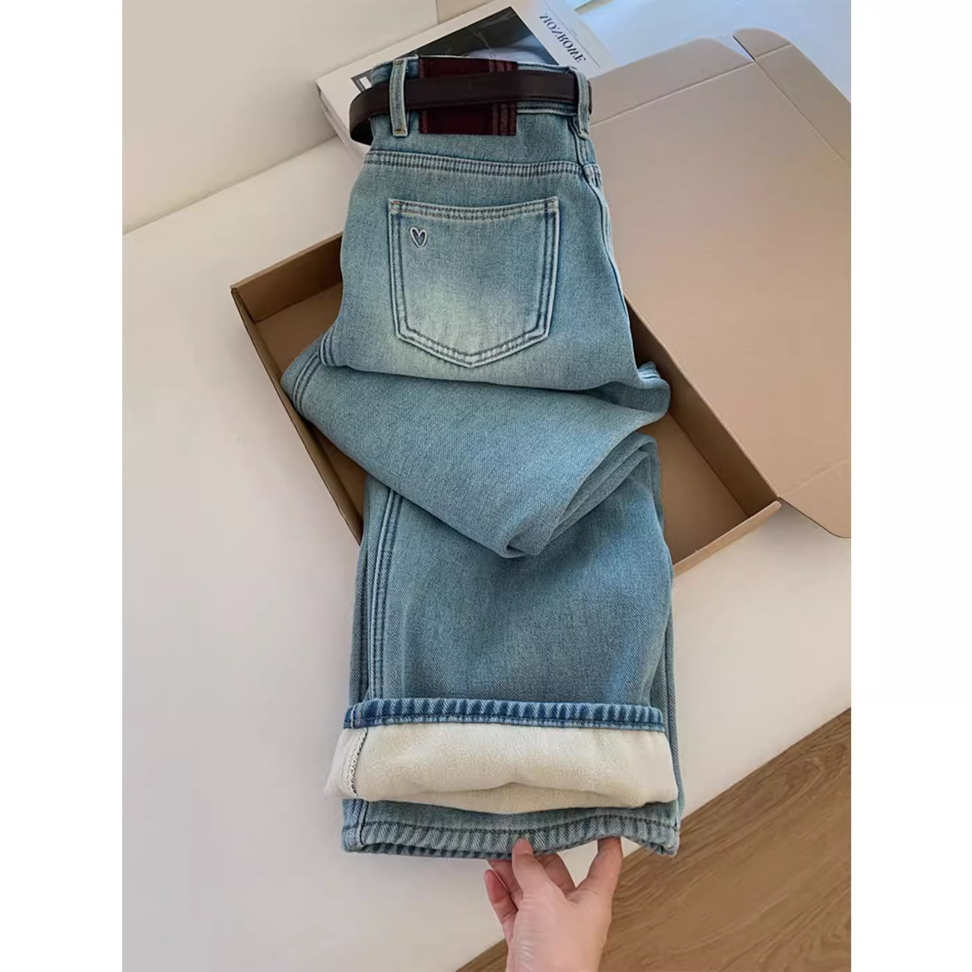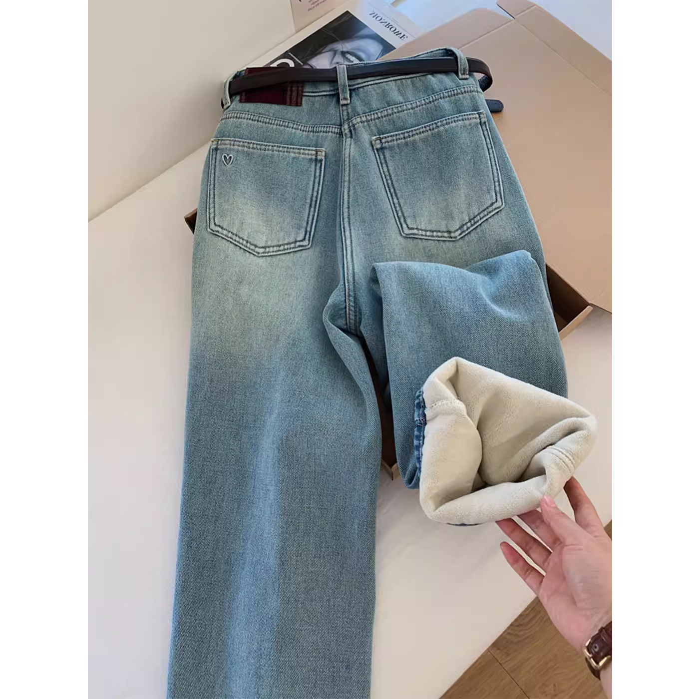 - Quần jean ống rộng, chất liệu dày dặn, lót lông cừu cao cấp, màu sáng dành cho nữ, quần dài dáng rộng, phong cách năng động, đa năng và thời trang.
