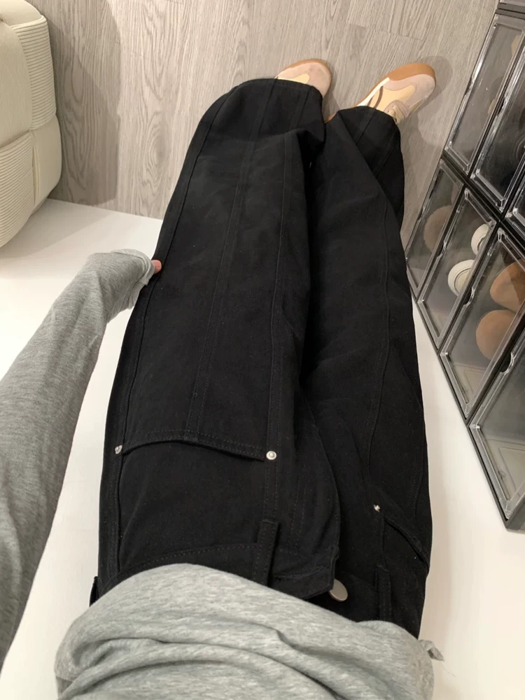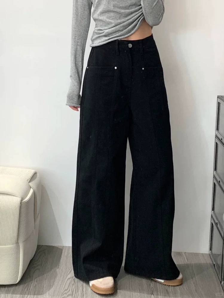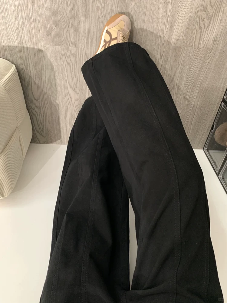 - Quần jean ống rộng chữ A kiểu Mỹ dành cho nữ, mẫu thu mới, cỡ lớn, lưng cao, dáng rộng, giảm béo, quần ống thẳng