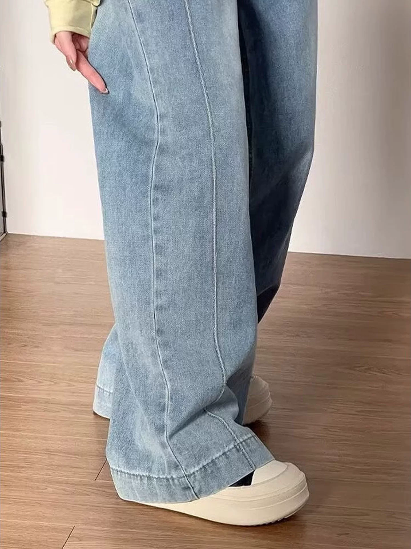 Quần jean ống rộng cổ điển dành cho nữ, phong cách mùa thu, cỡ lớn, lưng cao, dáng rộng, tôn dáng, dành cho người có dáng quả lê, ống thẳng, quần dài chạm sàn