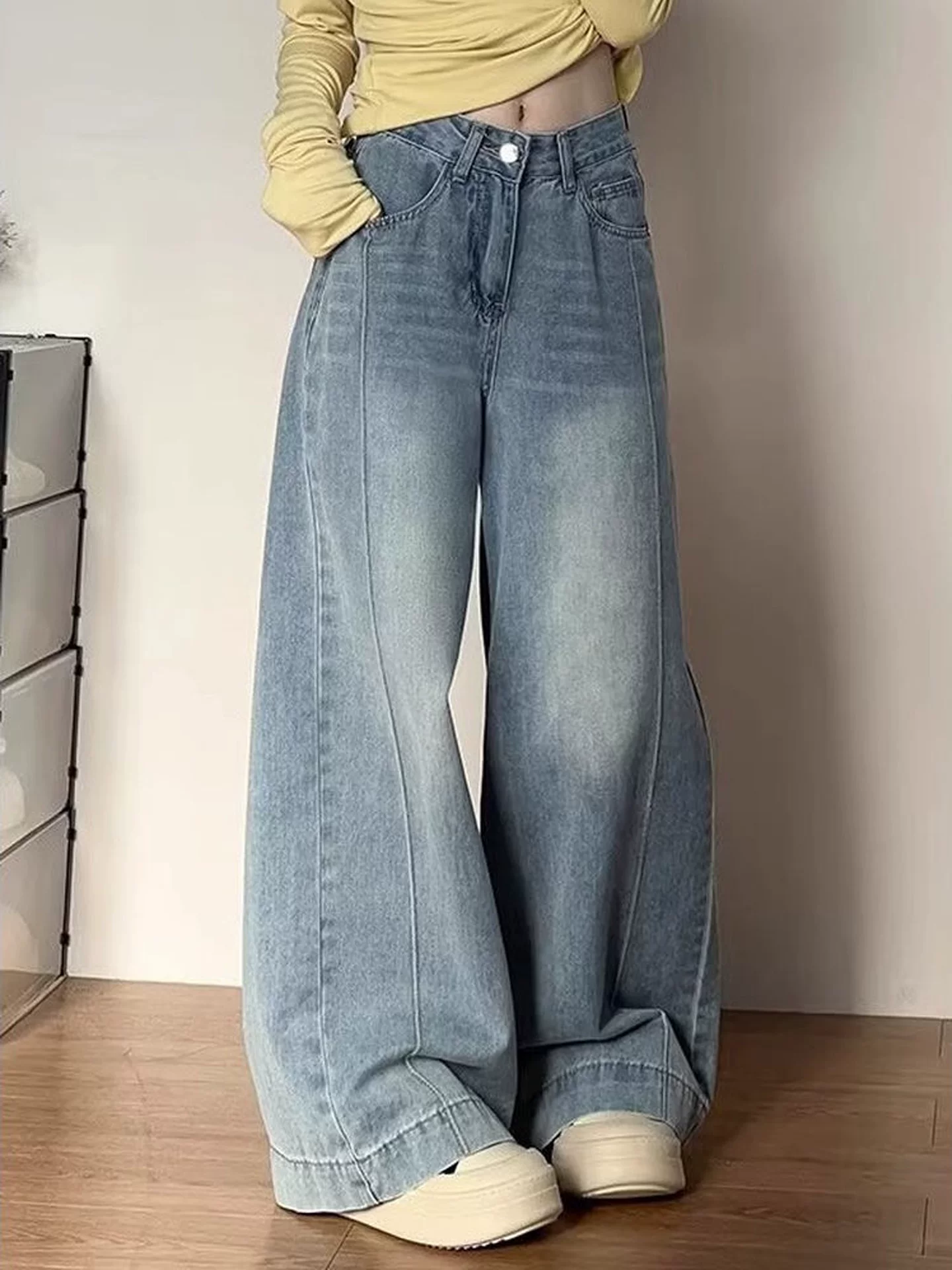 - Quần jean ống rộng cổ điển dành cho nữ, phong cách mùa thu, cỡ lớn, lưng cao, dáng rộng, tôn dáng, dành cho người có dáng quả lê, ống thẳng, quần dài chạm sàn
