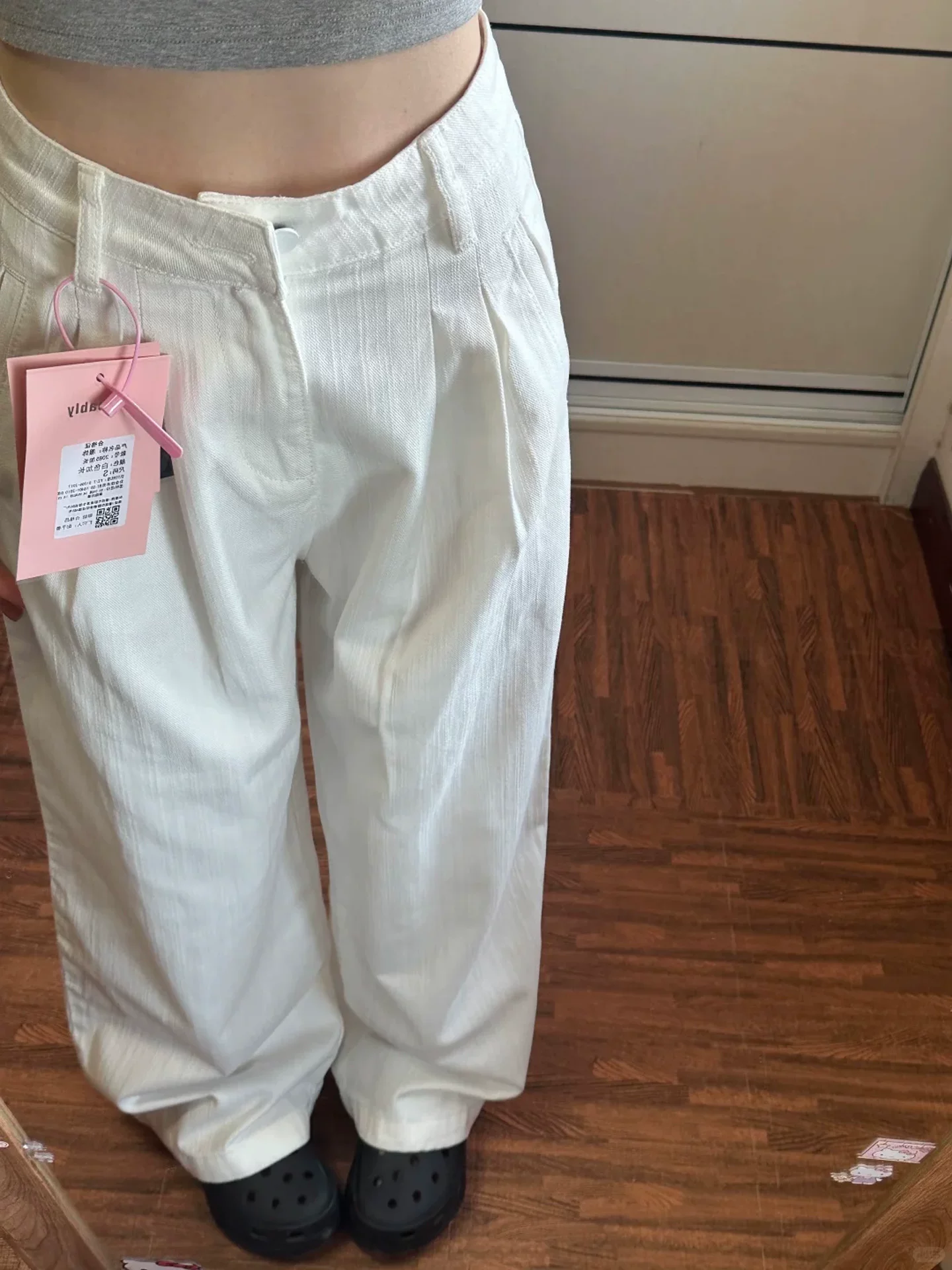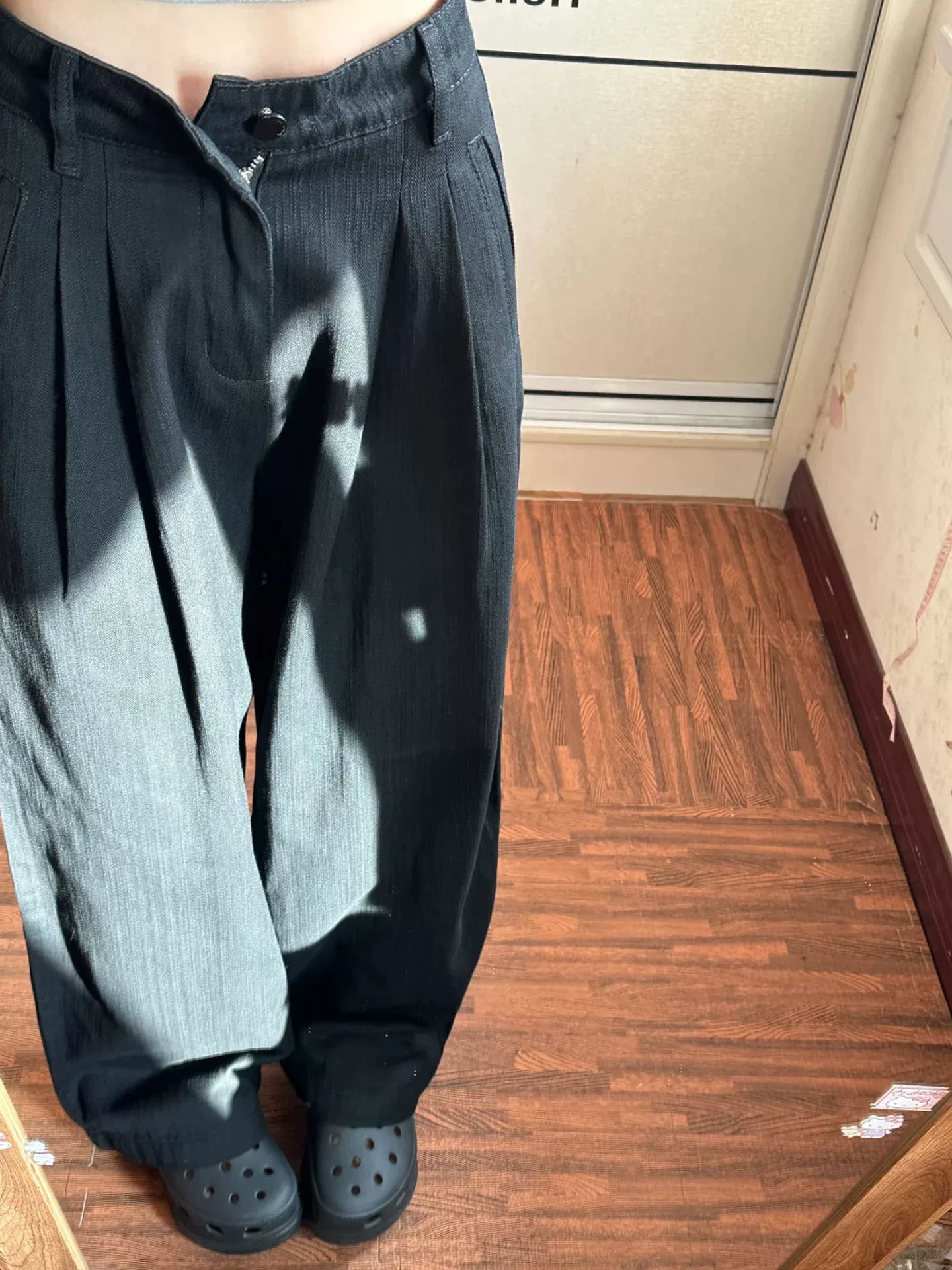 - Quần jean ống rộng có họa tiết xếp ly dành cho nữ, phong cách mùa thu mới, cỡ lớn, lưng cao, dáng rộng, mềm mại, tôn dáng, quần dài chạm sàn