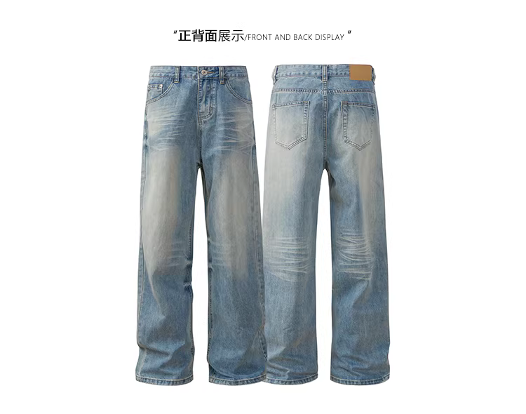 Quần jean ống rộng đa năng, dáng thẳng, phong cách retro, chất liệu denim đã qua xử lý, thương hiệu Mars Unknown Quantity High Street