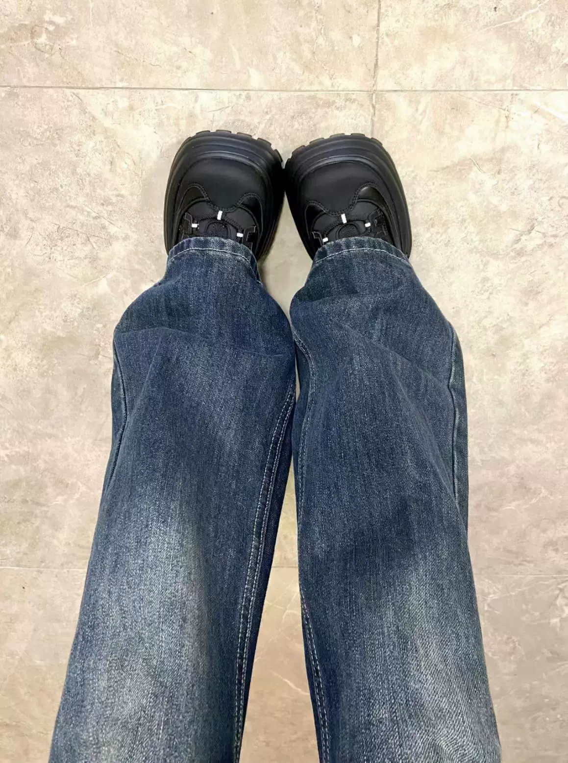 - Quần jean ống rộng dáng chữ E màu xanh retro dành cho nữ, size lớn, cạp cao, dáng rộng, tôn dáng, dài chấm đất