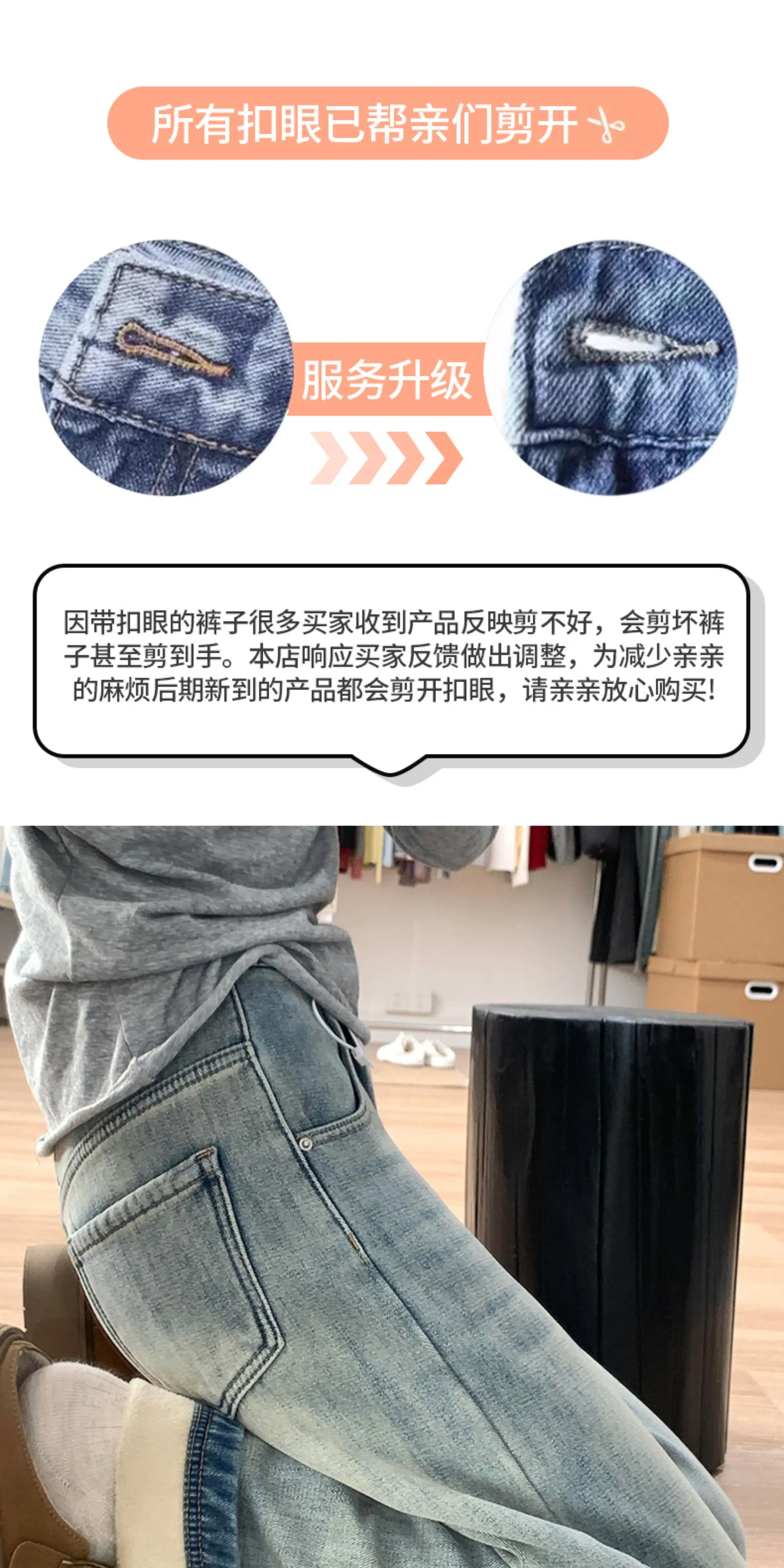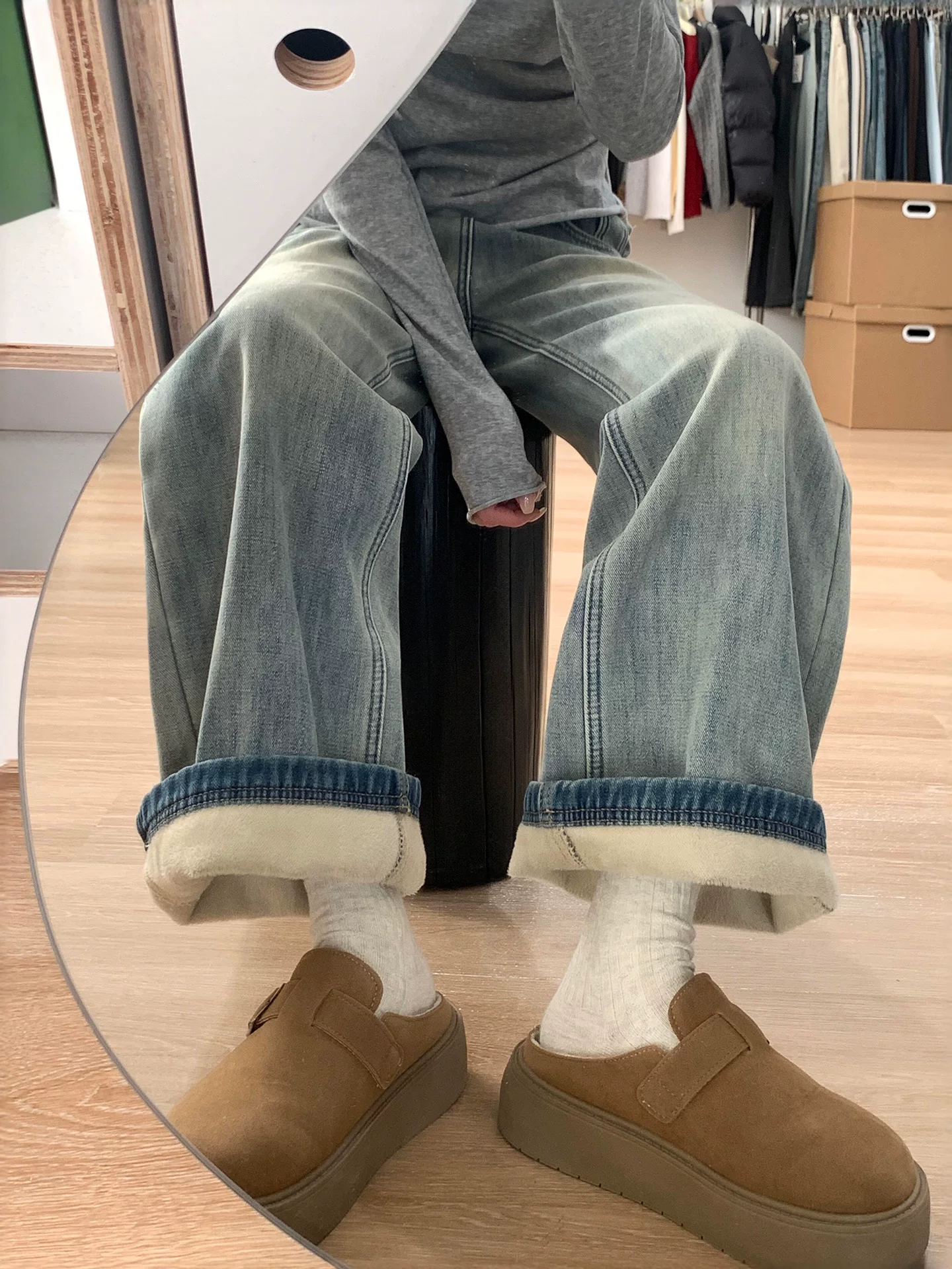 - Quần jean ống rộng dày lót lông cừu dành cho nữ, mùa thu đông, cỡ lớn, lưng cao, dáng rộng, giảm béo, dáng quả lê, quần ống thẳng