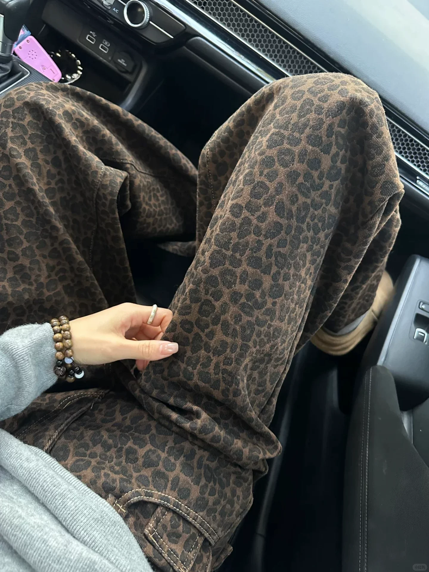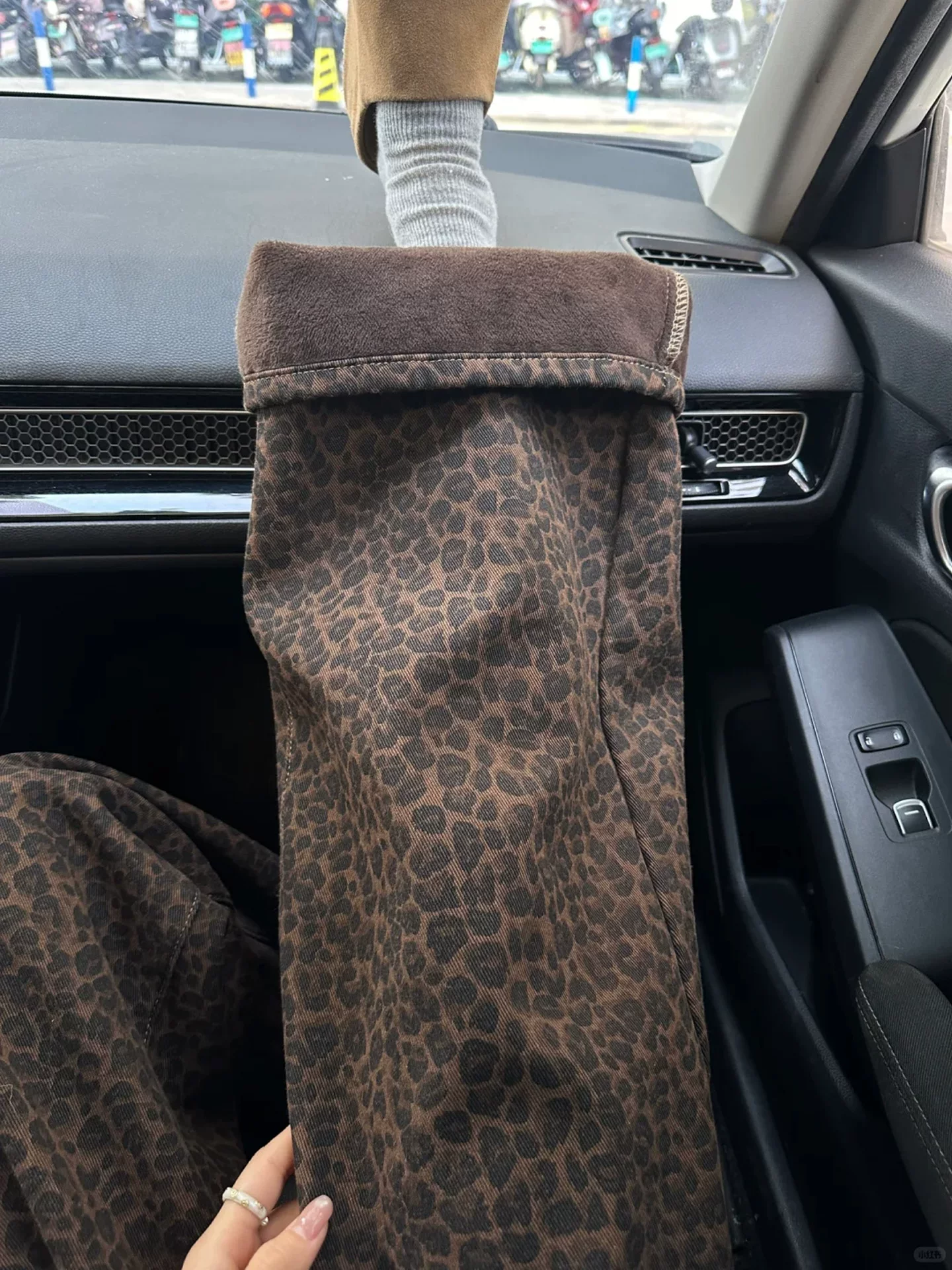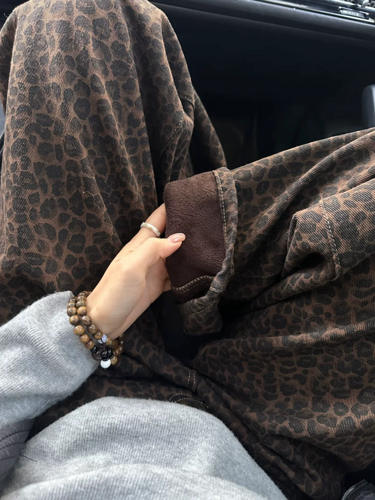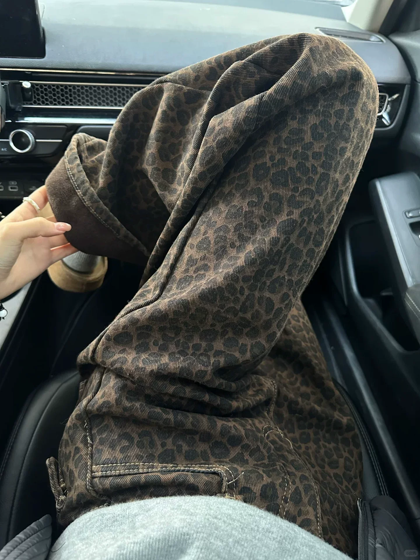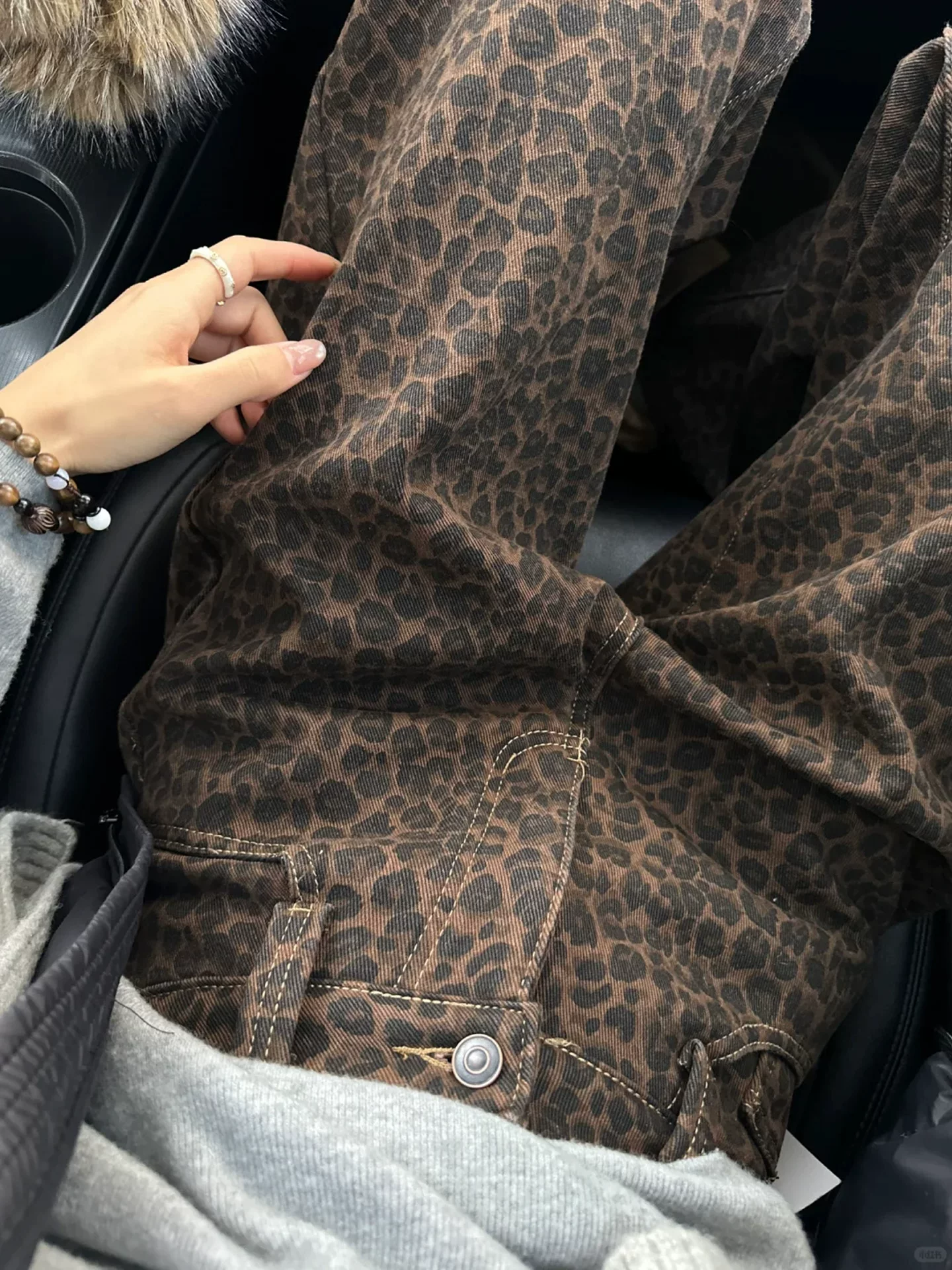 - Quần jean ống rộng họa tiết da báo cổ điển dành cho nữ, mùa thu đông, lót lông cừu, dày, cỡ lớn, lưng cao, dáng rộng, suôn, quần ống thẳng.