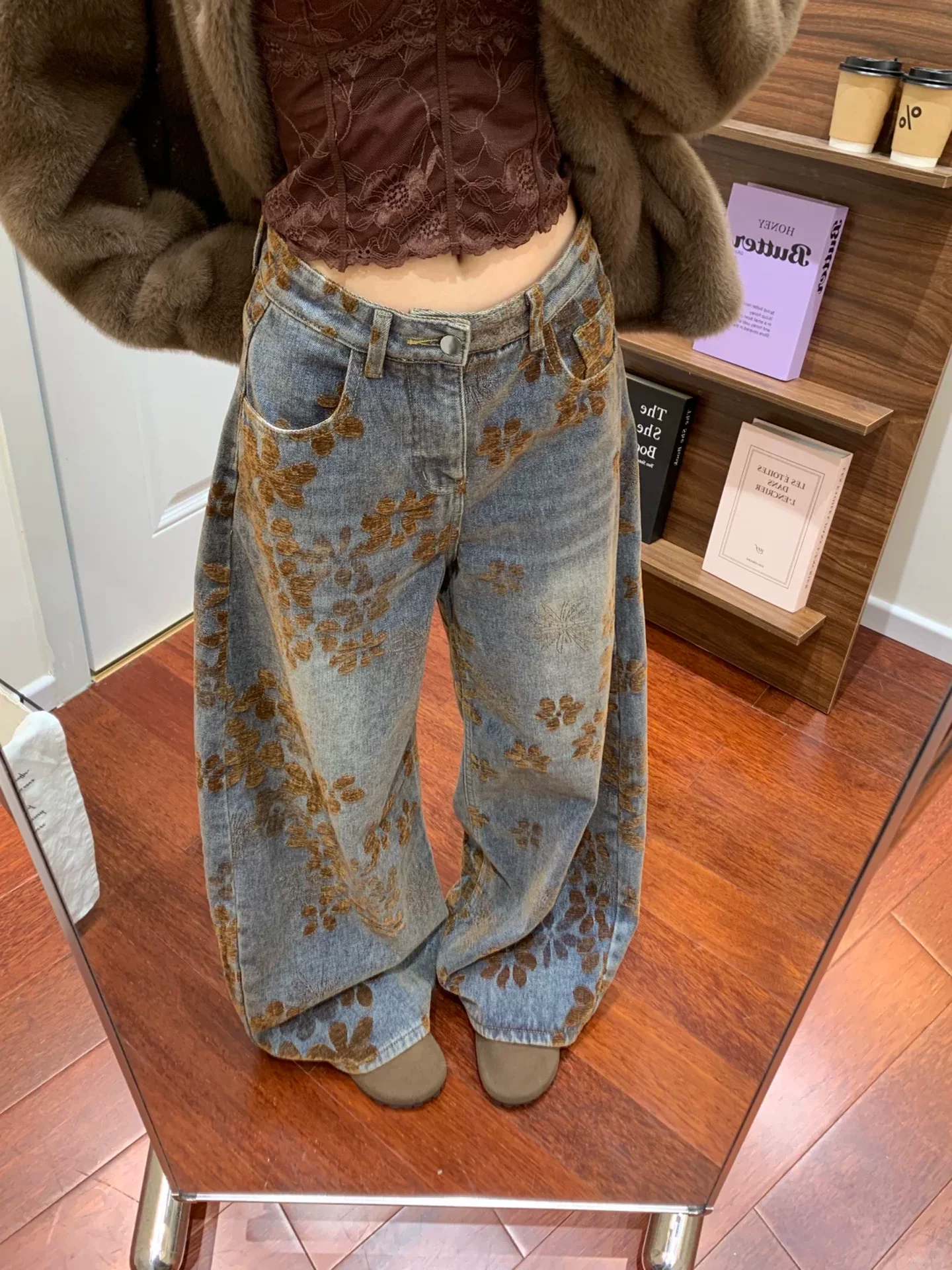 Quần jean ống rộng kiểu cổ điển Mỹ dành cho nữ, phong cách thu đông, cỡ lớn, lưng cao, dáng rộng, mềm mại, quần scimitar tôn dáng.
