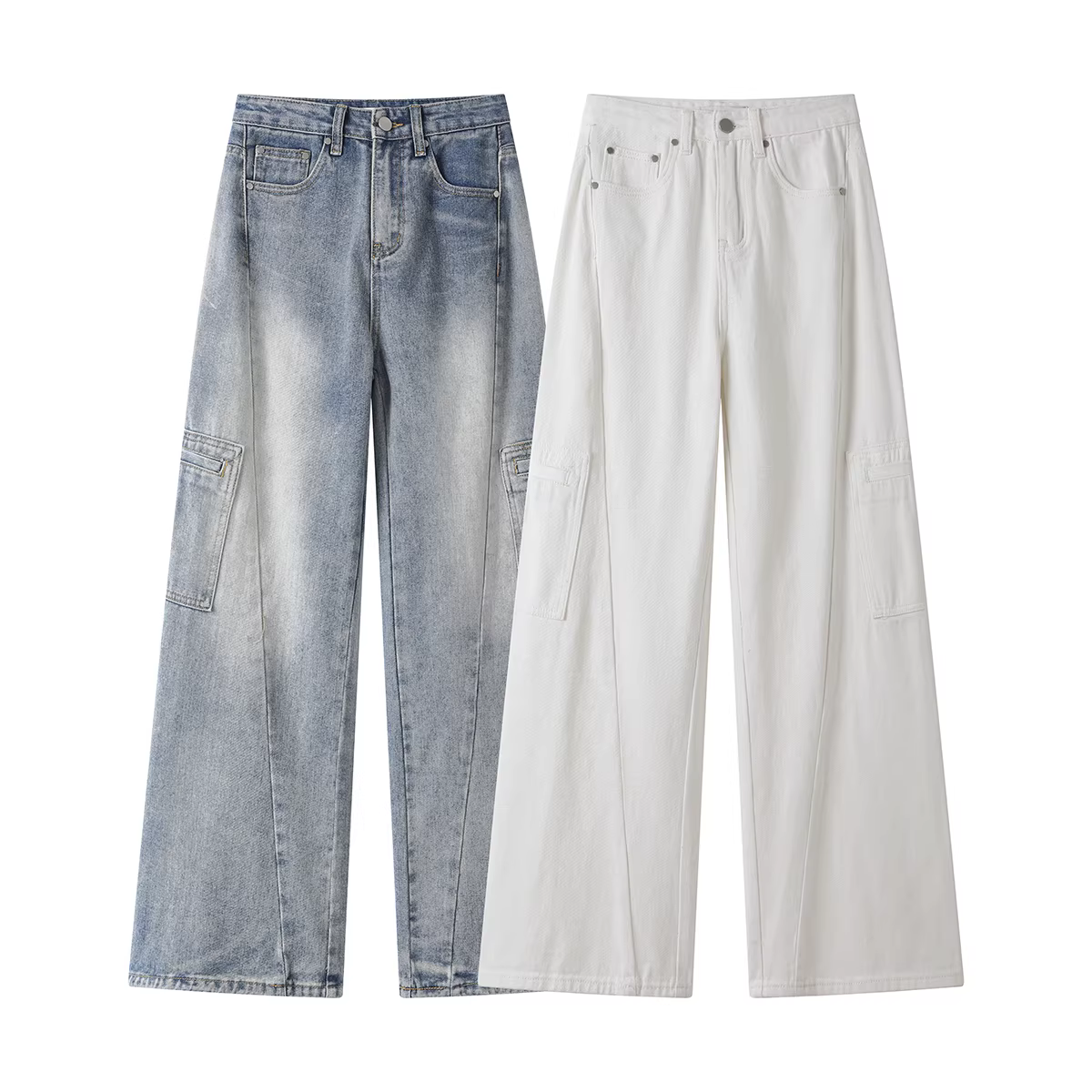 Quần jean ống rộng kiểu retro Mỹ dành cho nữ, mùa xuân, mùa thu, mùa hè, phong cách Hàn Quốc, quần dài ống thẳng được giặt sạch