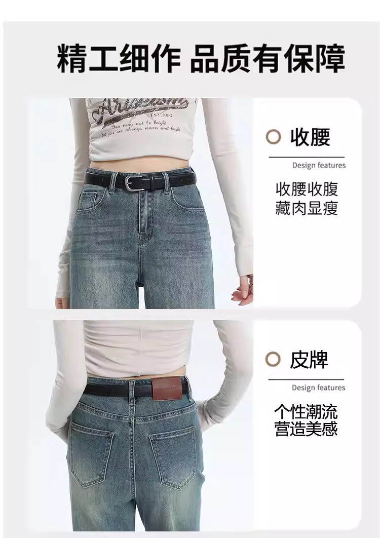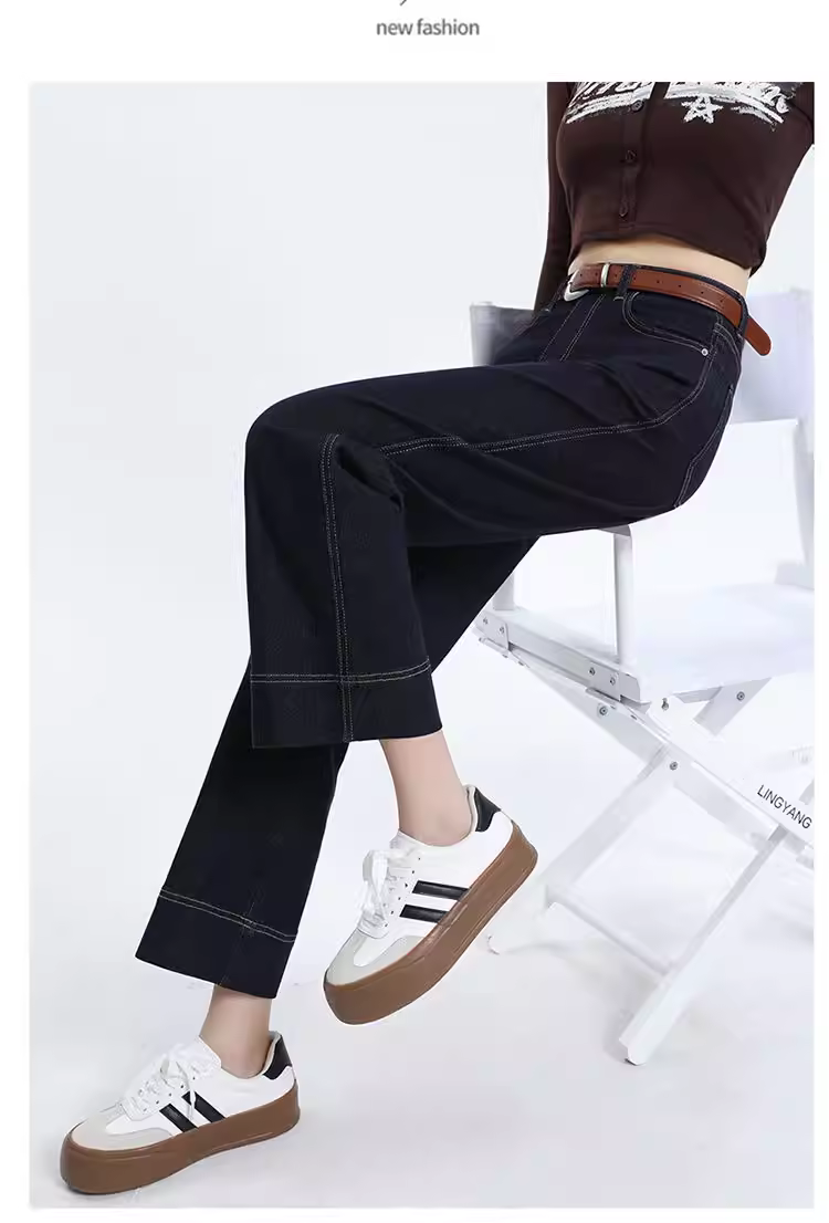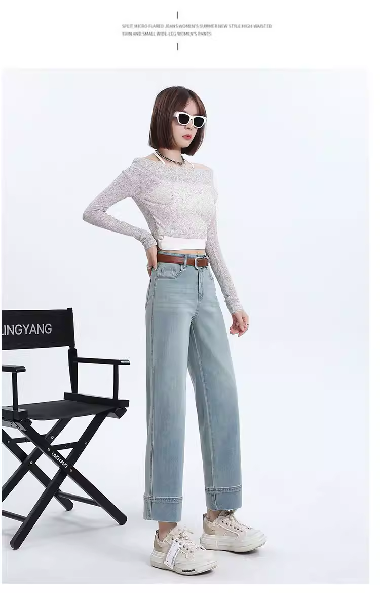- Quần jean ống rộng lót lông trắng La Chapelle dành cho nữ, quần dài chín phần dáng rộng thẳng, mẫu mới thu đông 2025.