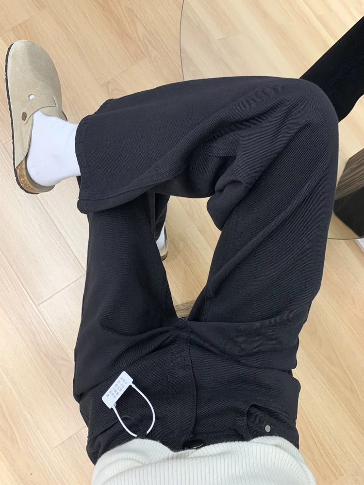 - Quần jean ống rộng màu đen dành cho nữ, phong cách mới đầu xuân, cỡ lớn, lưng cao, dáng rộng, giảm béo, dáng quả lê, quần ống thẳng