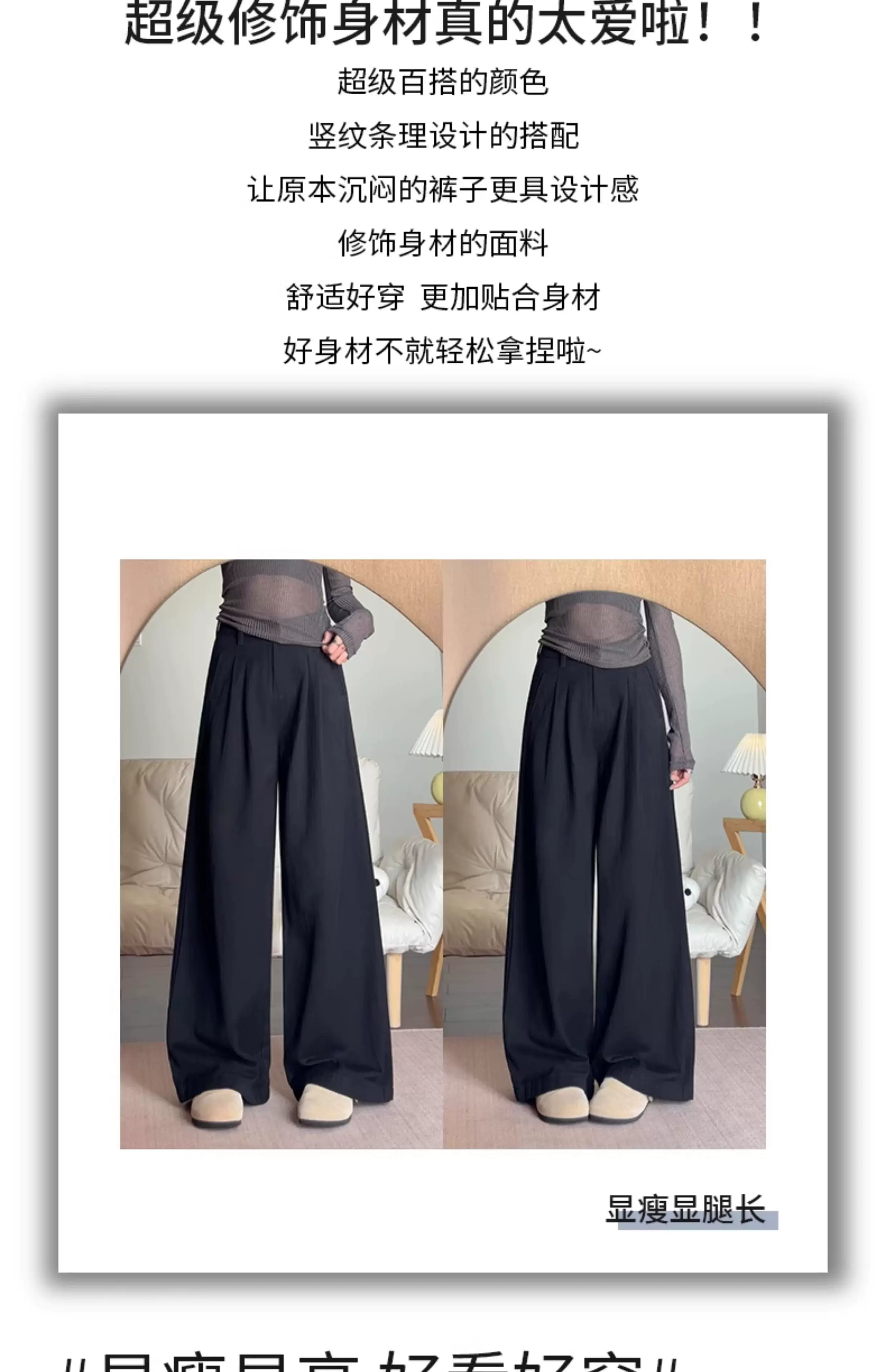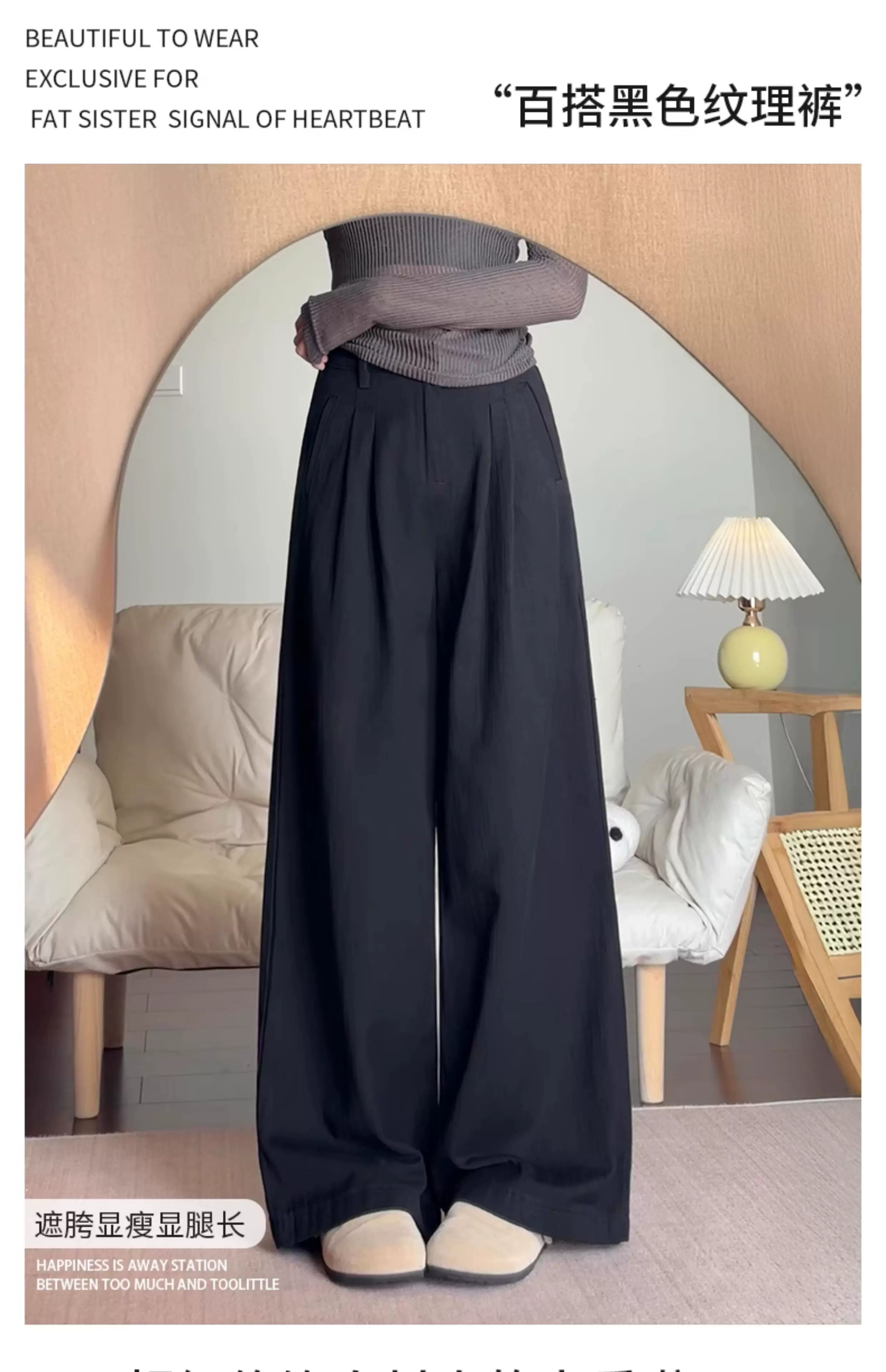 Quần jean ống rộng màu đen dành cho nữ, phong cách mùa thu mới, cỡ lớn, lưng cao, dáng rộng, giảm béo, dáng quả lê, quần dài đến sàn