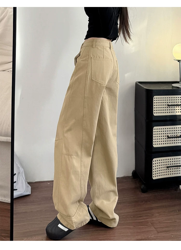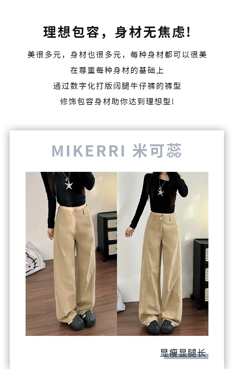 - Quần jean ống rộng màu kaki cho nữ, kiểu dáng mùa thu mới, cỡ lớn, lưng cao, dáng rộng, dáng thon gọn, dáng quả lê, quần ống thẳng