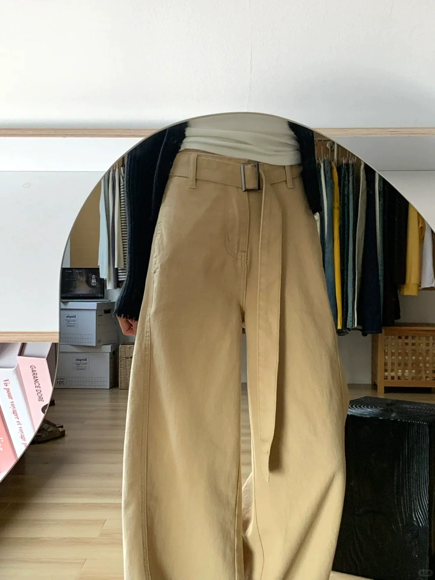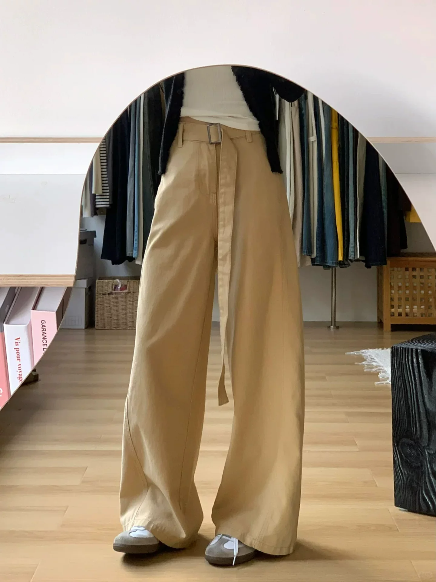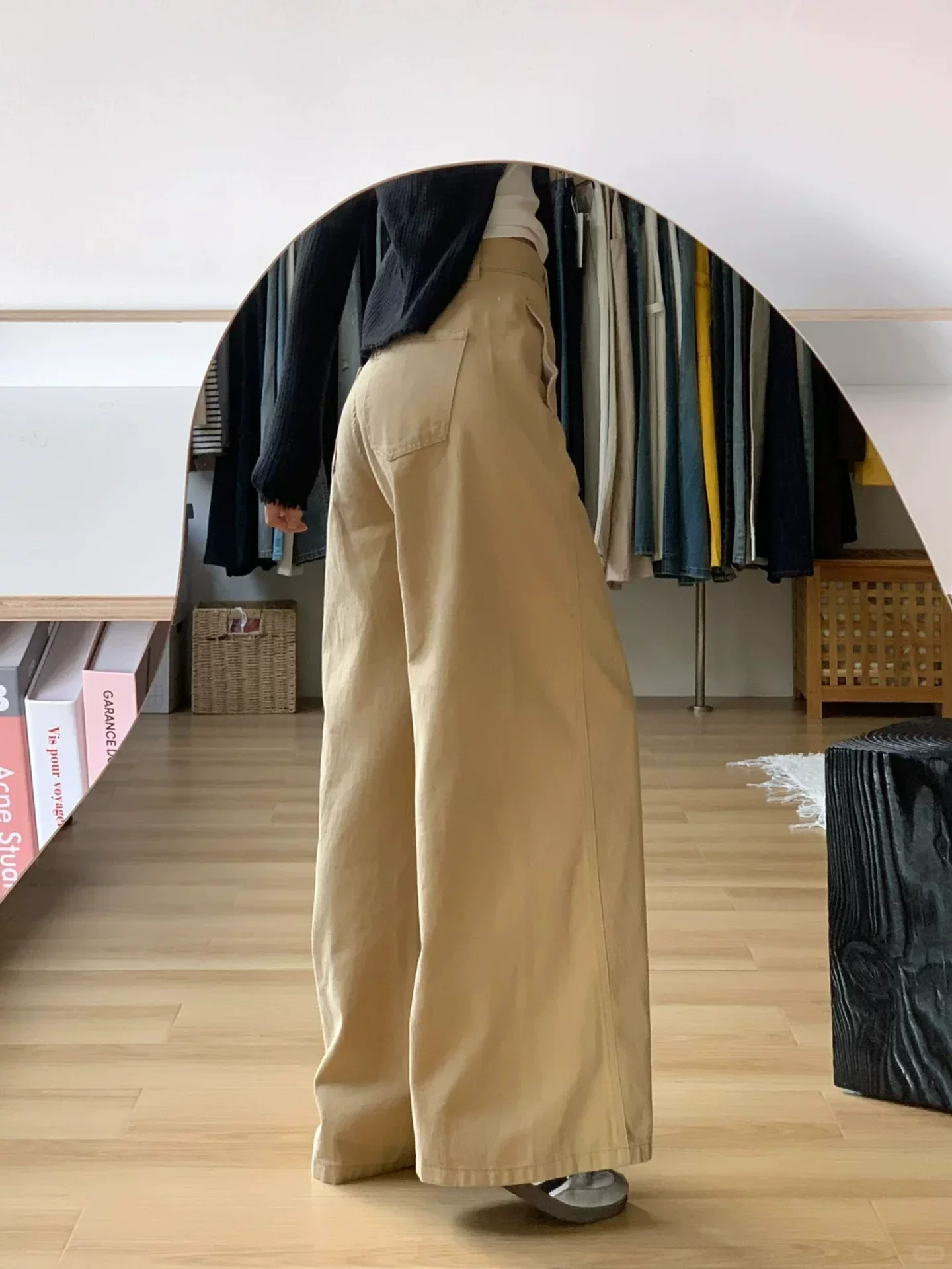 Quần jean ống rộng màu kaki cổ điển của Mỹ dành cho nữ, đầu mùa thu, cỡ lớn, lưng cao, dáng rộng, mềm mại, quần ống thẳng thông thường