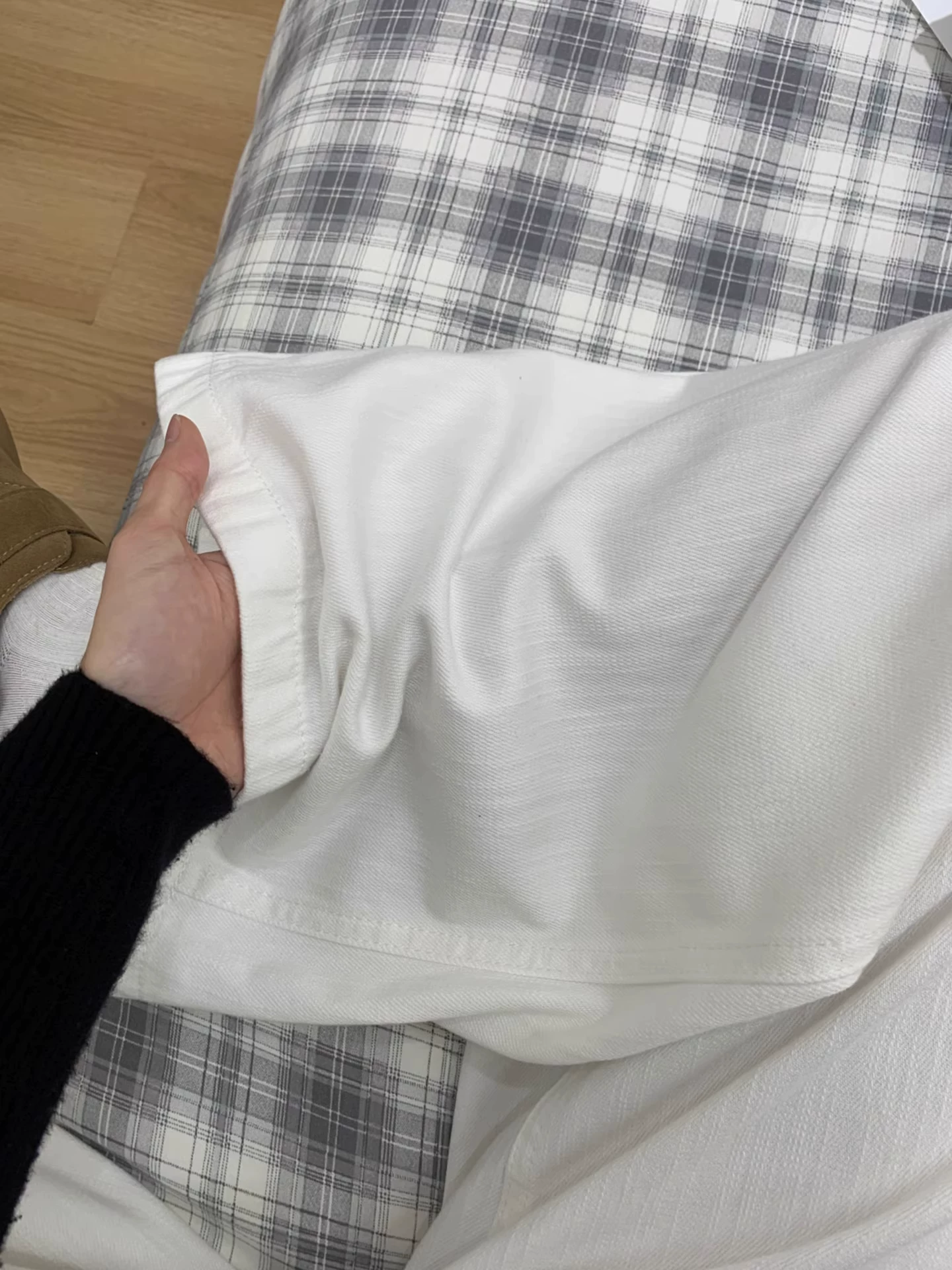 - Quần jean ống rộng màu trắng dành cho nữ, mùa thu đông, lót lông cừu, dày, cỡ lớn, lưng cao, dáng rộng, giảm béo, ống thẳng, quần dài đến sàn.