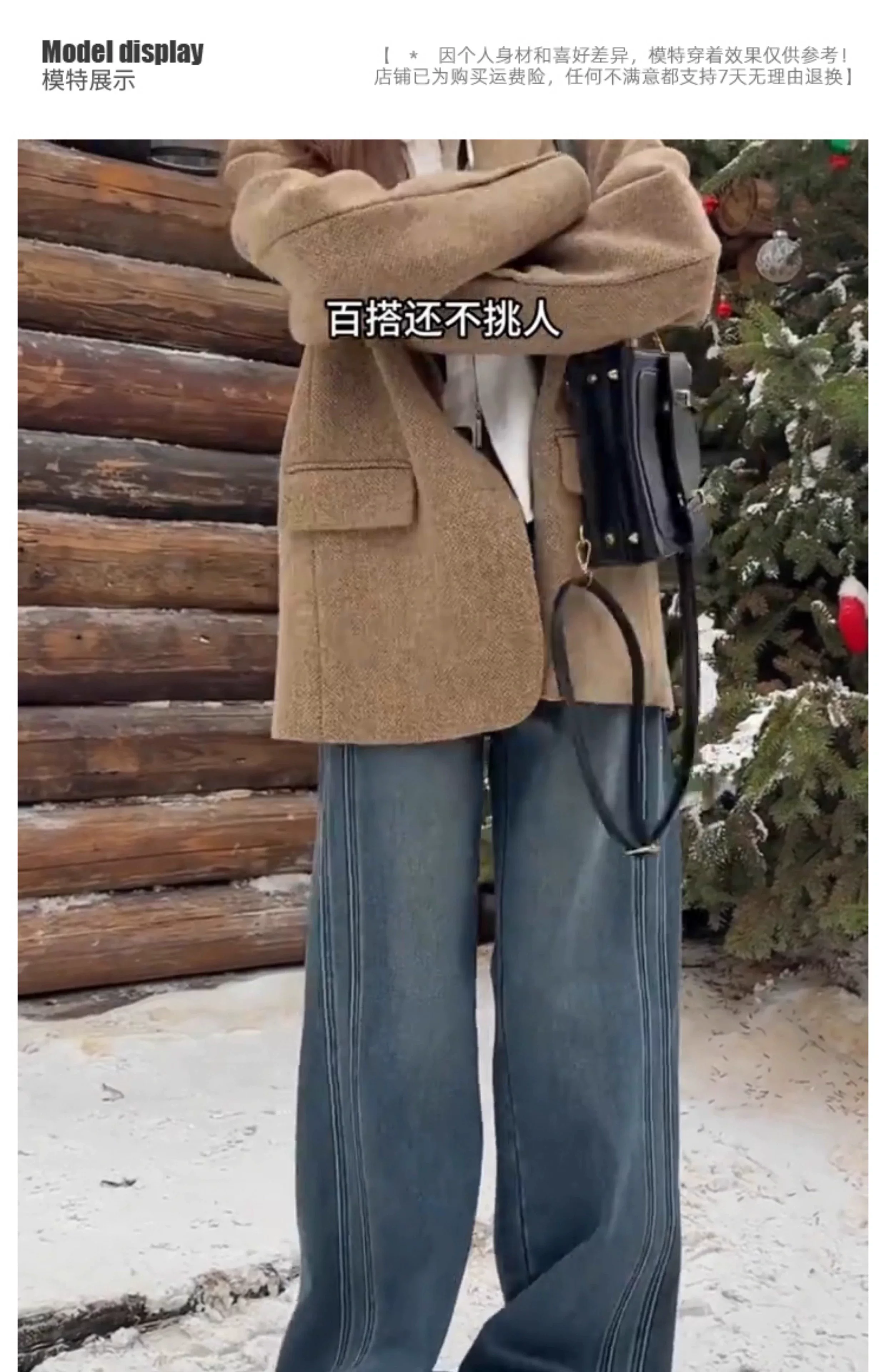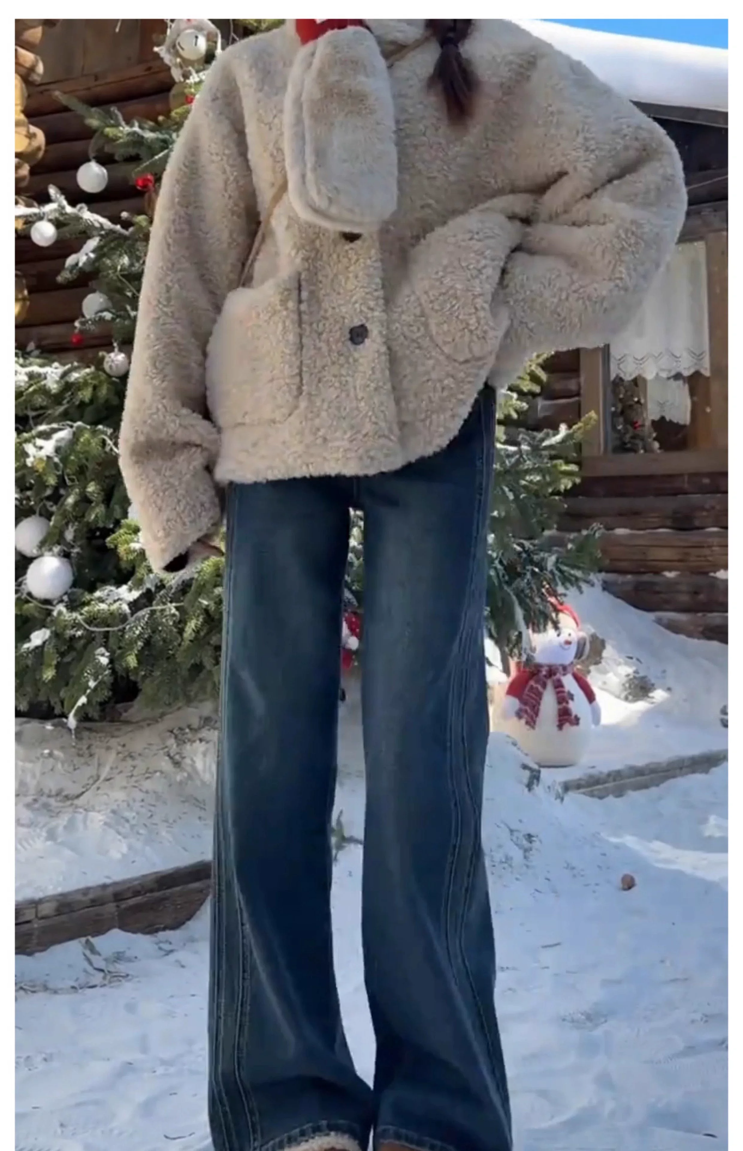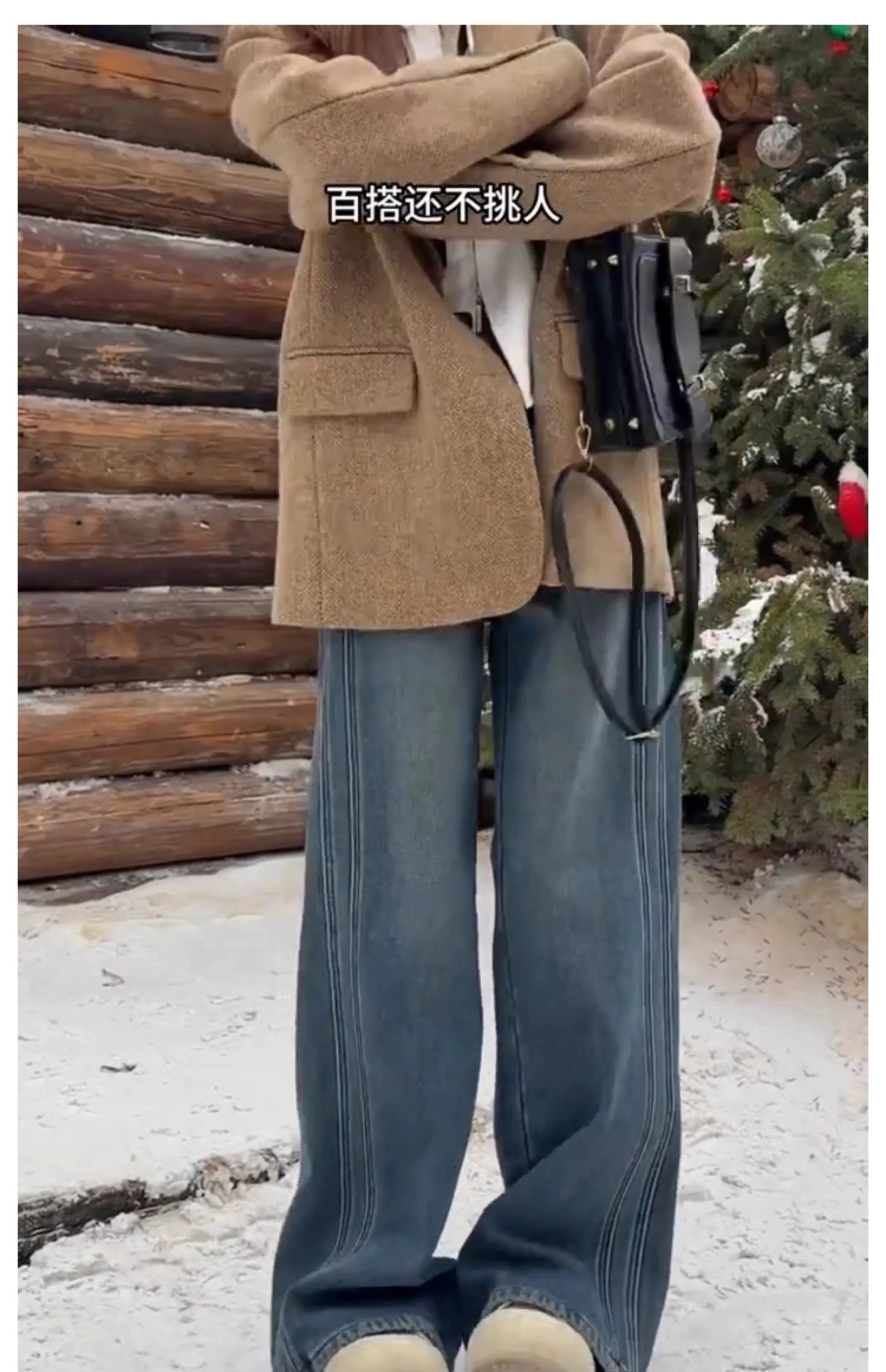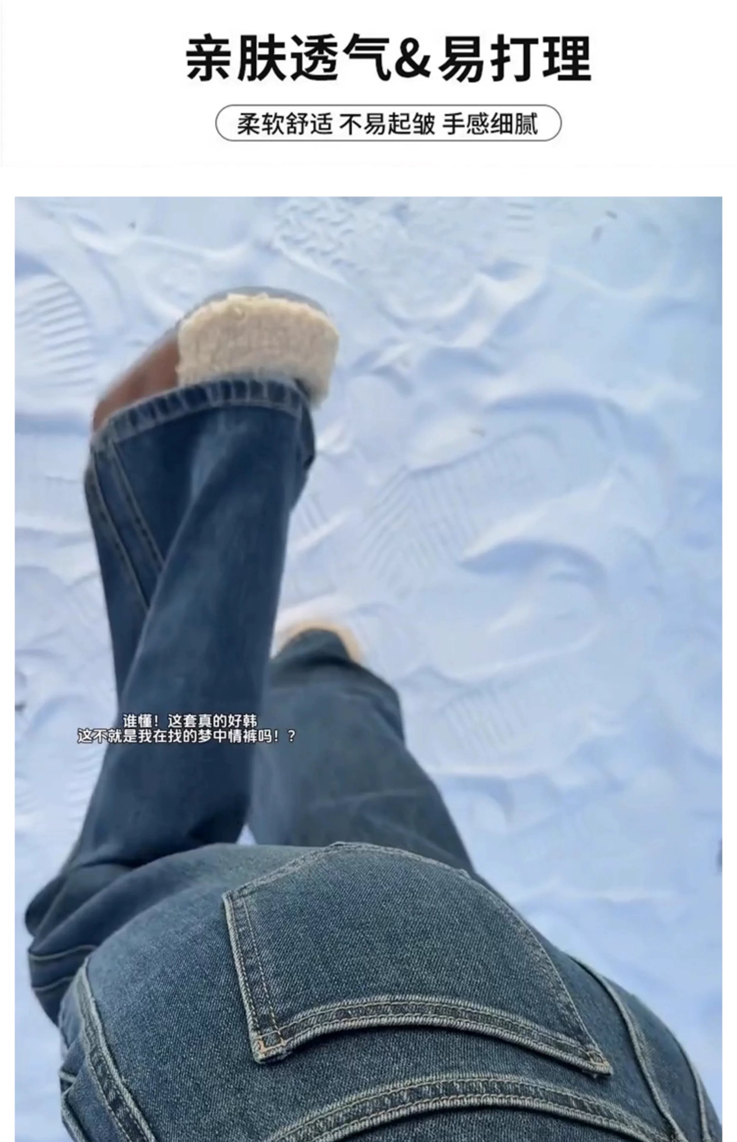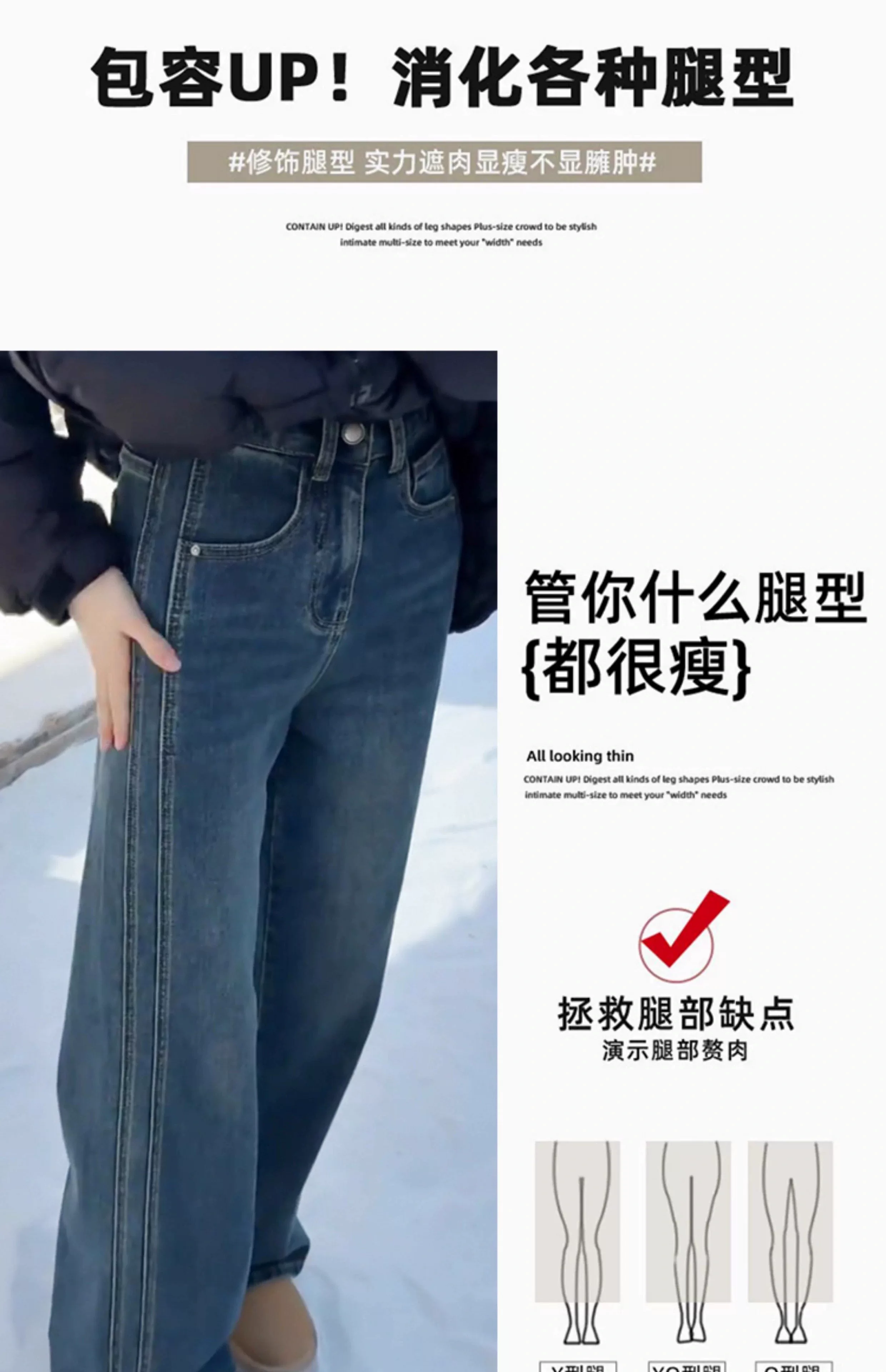- Quần jean ống rộng màu xanh cổ điển dành cho nữ, mùa thu đông, lót lông cừu, dày, cỡ lớn, lưng cao, dáng rộng, tôn dáng, ống thẳng, quần dài chạm sàn.