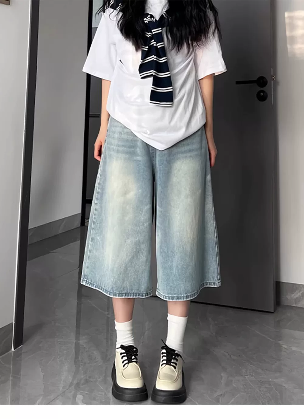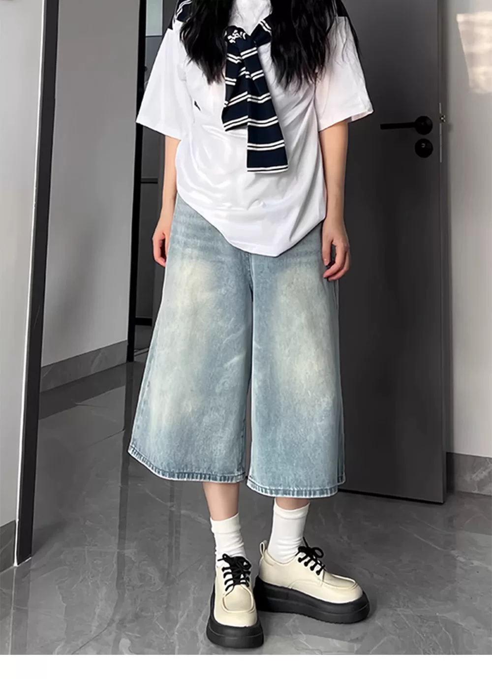 Quần jean ống rộng màu xanh nhạt dành cho nữ, size lớn mùa hè, cạp cao, dáng rộng, tôn dáng, quần dài vừa phải ống thẳng