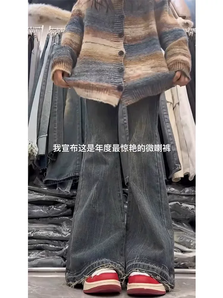 - Quần jean ống rộng màu xanh retro không bó sát dành cho nữ trong mùa thu đông, quần ống loe dáng rộng cạp cao, cỡ lớn, giúp thon gọn