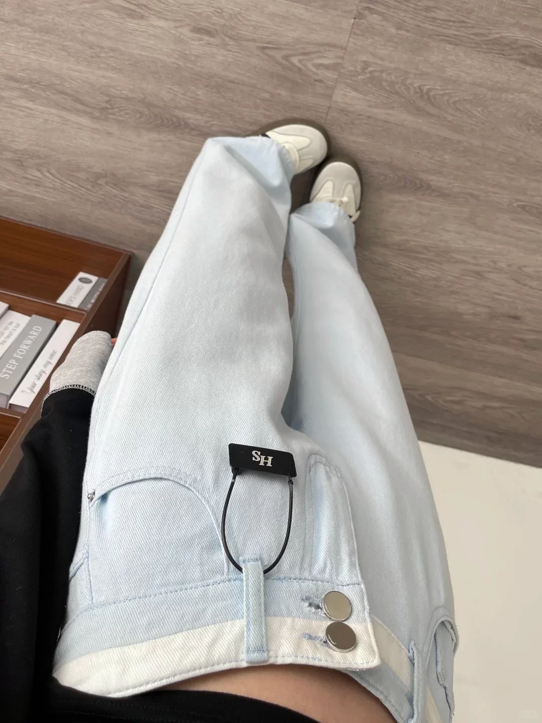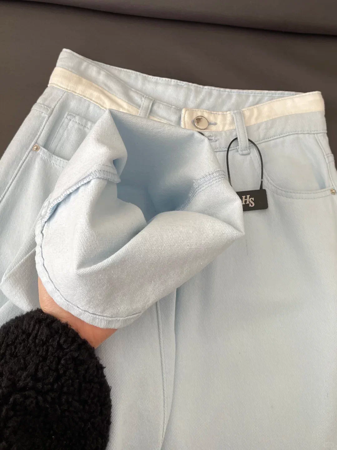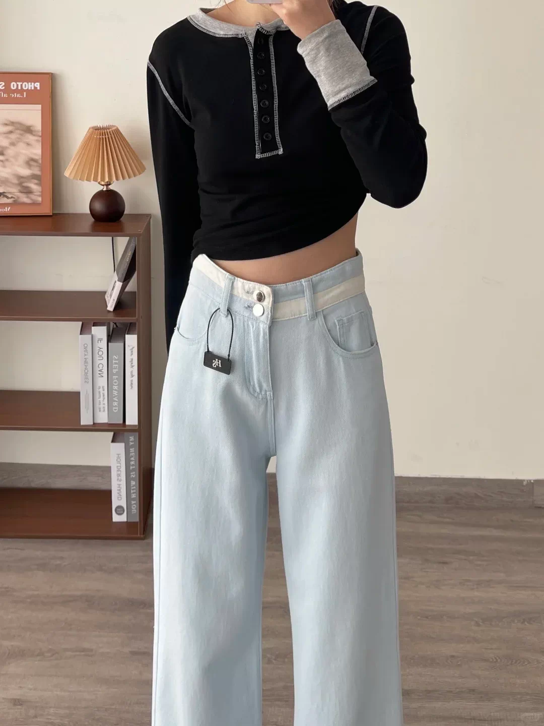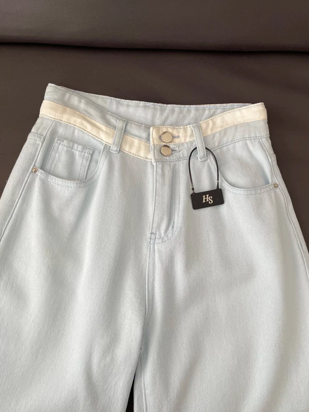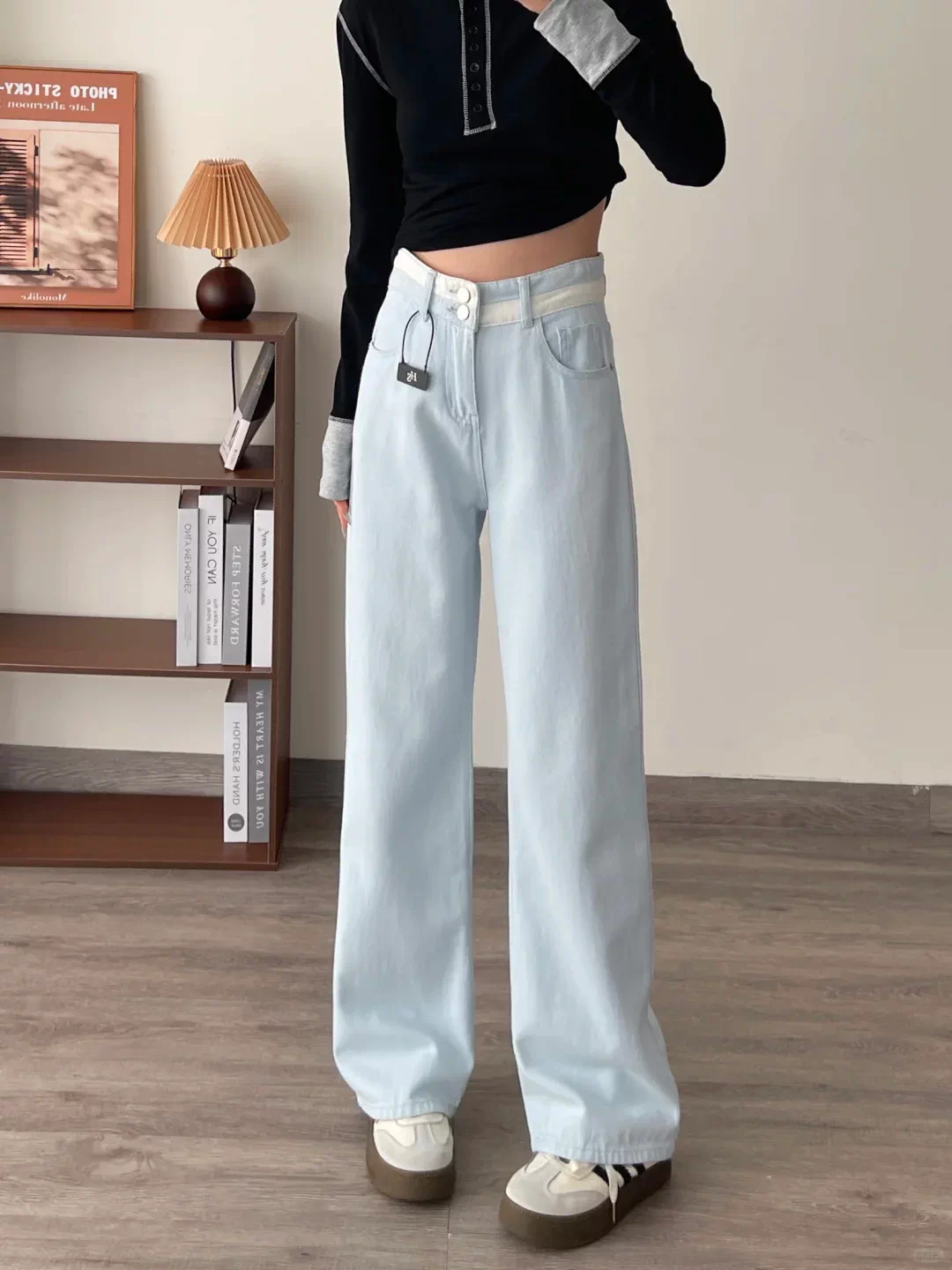- Quần jean ống thẳng cho nữ, kiểu xuân hè mới, size lớn, thiết kế dành cho phụ nữ có đường cong, cạp cao, che hông, giảm béo, quần ống rộng.