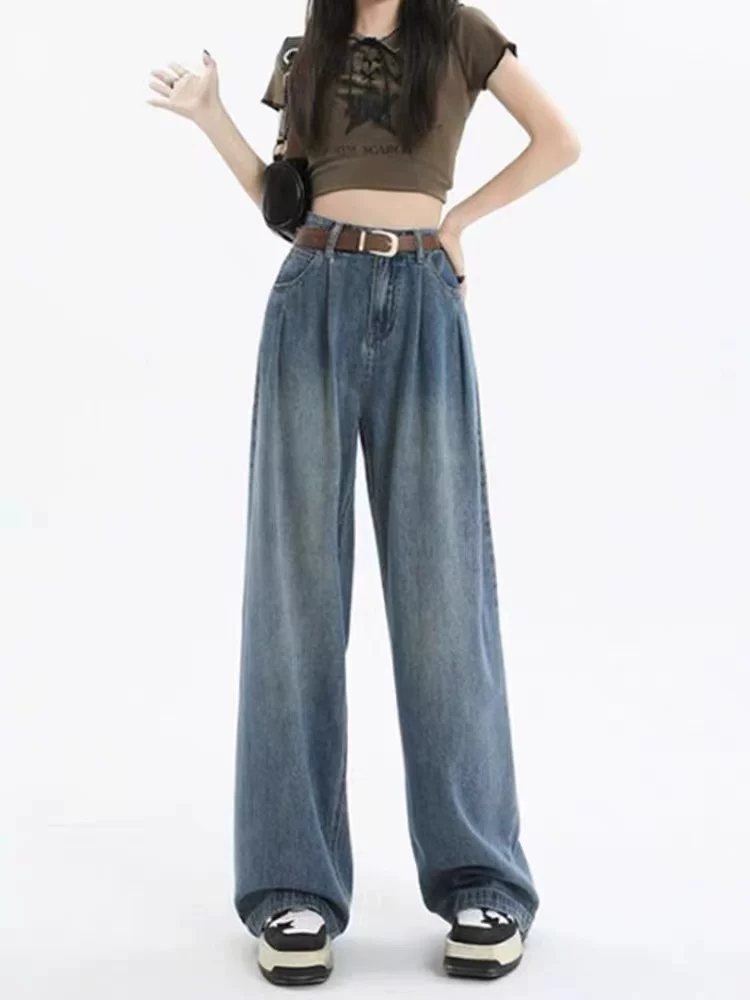 - Quần jean ống thẳng dáng quả lê dành cho nữ, kiểu dáng mỏng mùa hè, cỡ lớn, lưng cao, mềm mại, tôn dáng, quần dài ống rộng chất liệu lụa đá