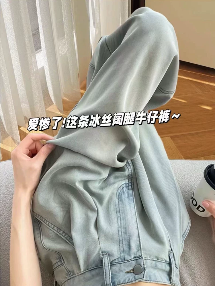 Quần jean ống thẳng dáng quả lê dành cho nữ, kiểu dáng mỏng mùa hè, cỡ lớn, lưng cao, mềm mại, tôn dáng, quần dài ống rộng chất liệu lụa đá