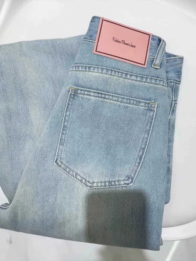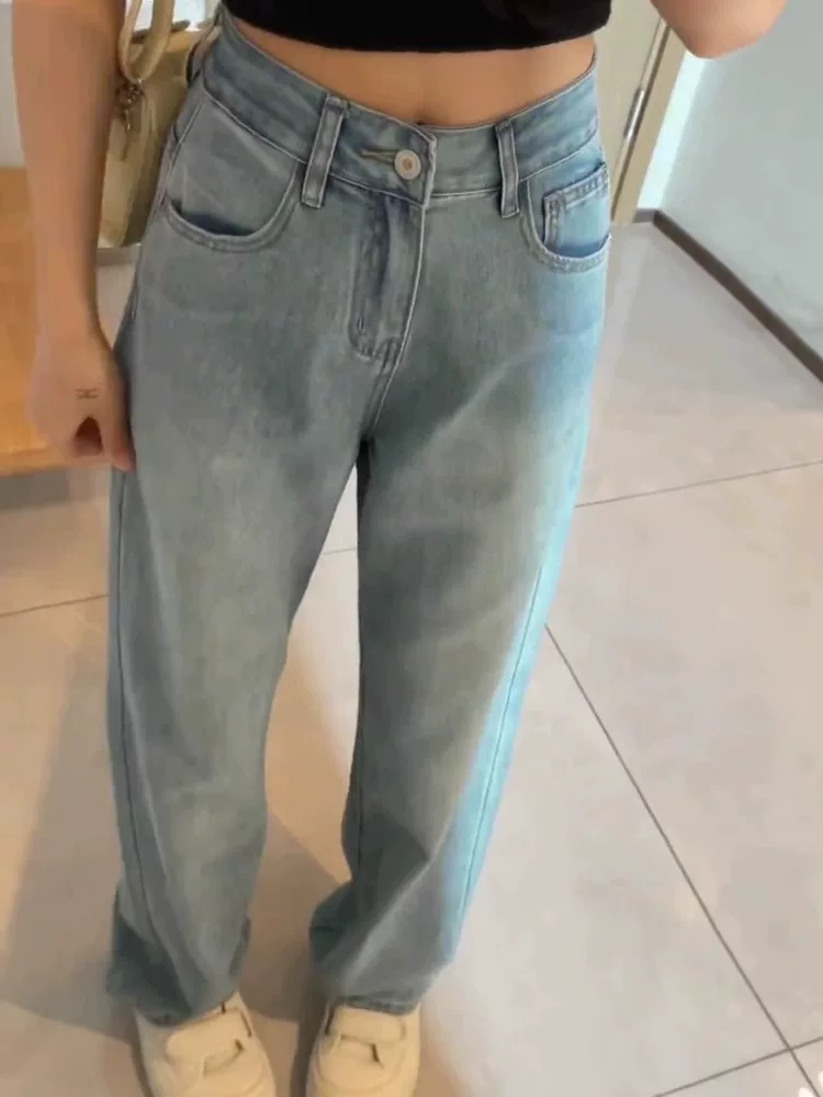 - Quần jean ống thẳng kiểu cổ điển dáng quả lê dành cho nữ, kiểu dáng mỏng mùa hè, cỡ lớn, lưng cao, dáng rộng, dáng suông, quần ống rộng hẹp