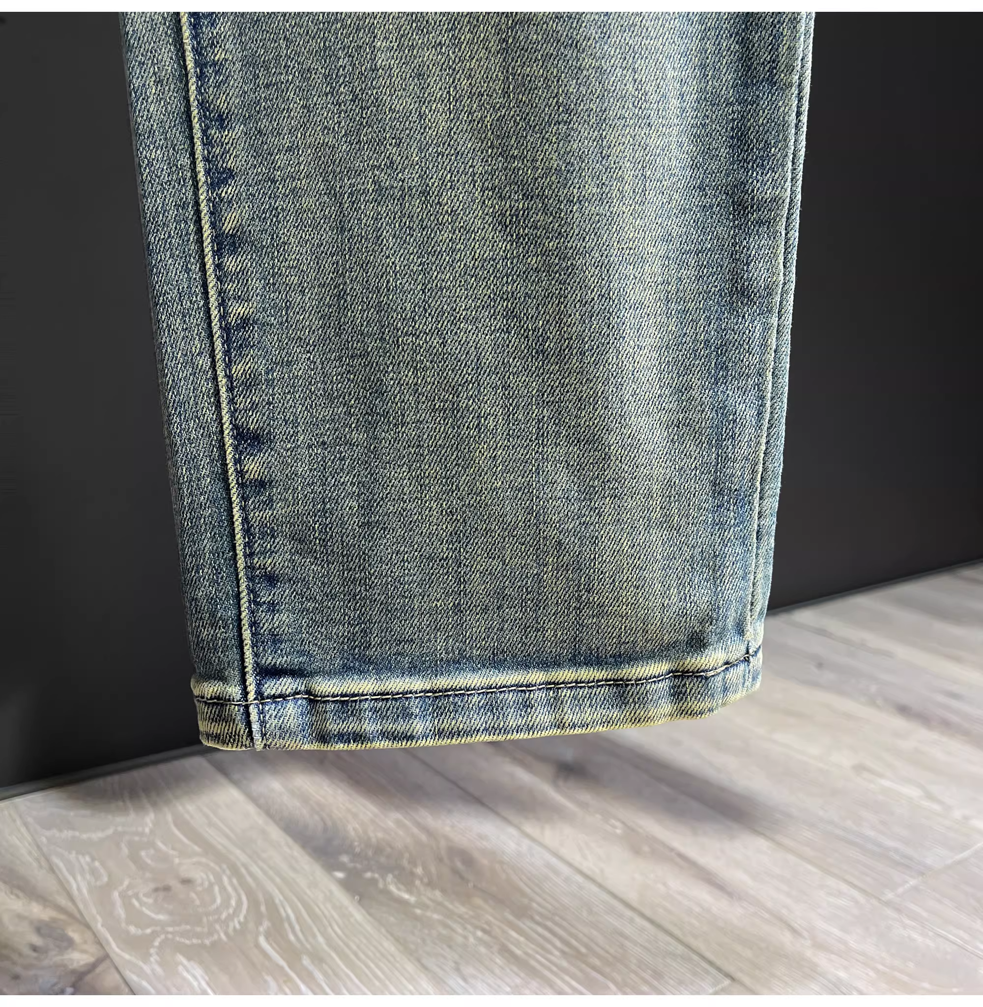 Quần jean ống thẳng kiểu Mỹ LUUD, thiết kế rách kiểu móng vuốt mèo, thiết kế nhãn mác, nhuộm màu bùn vàng, quần đa năng dành cho nam.