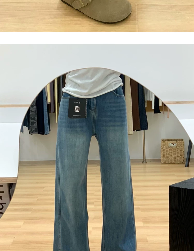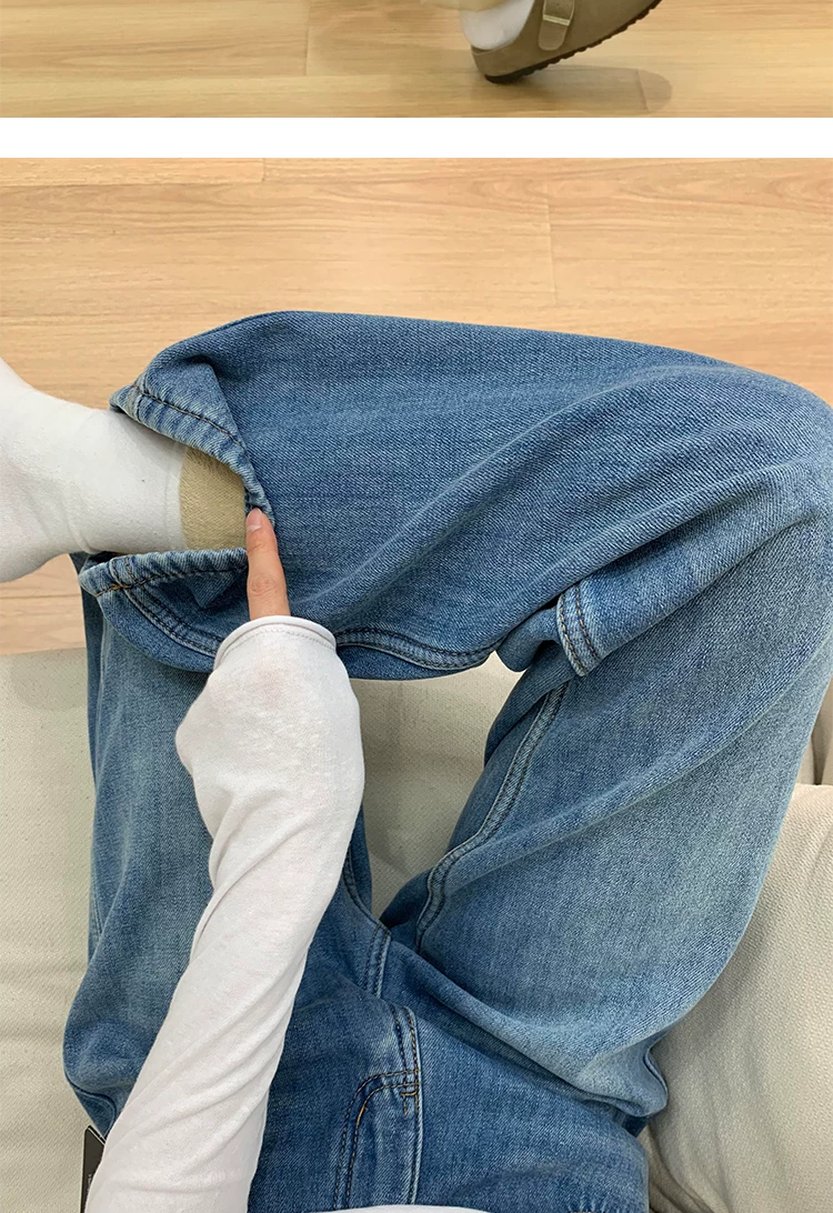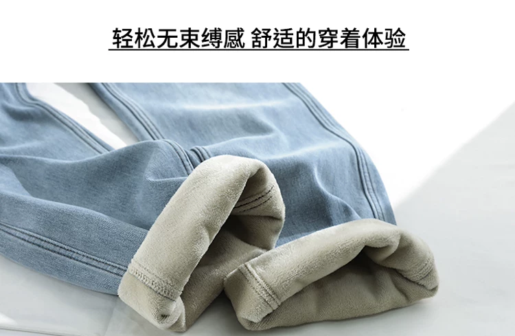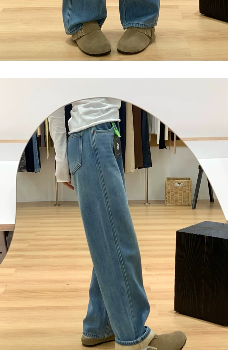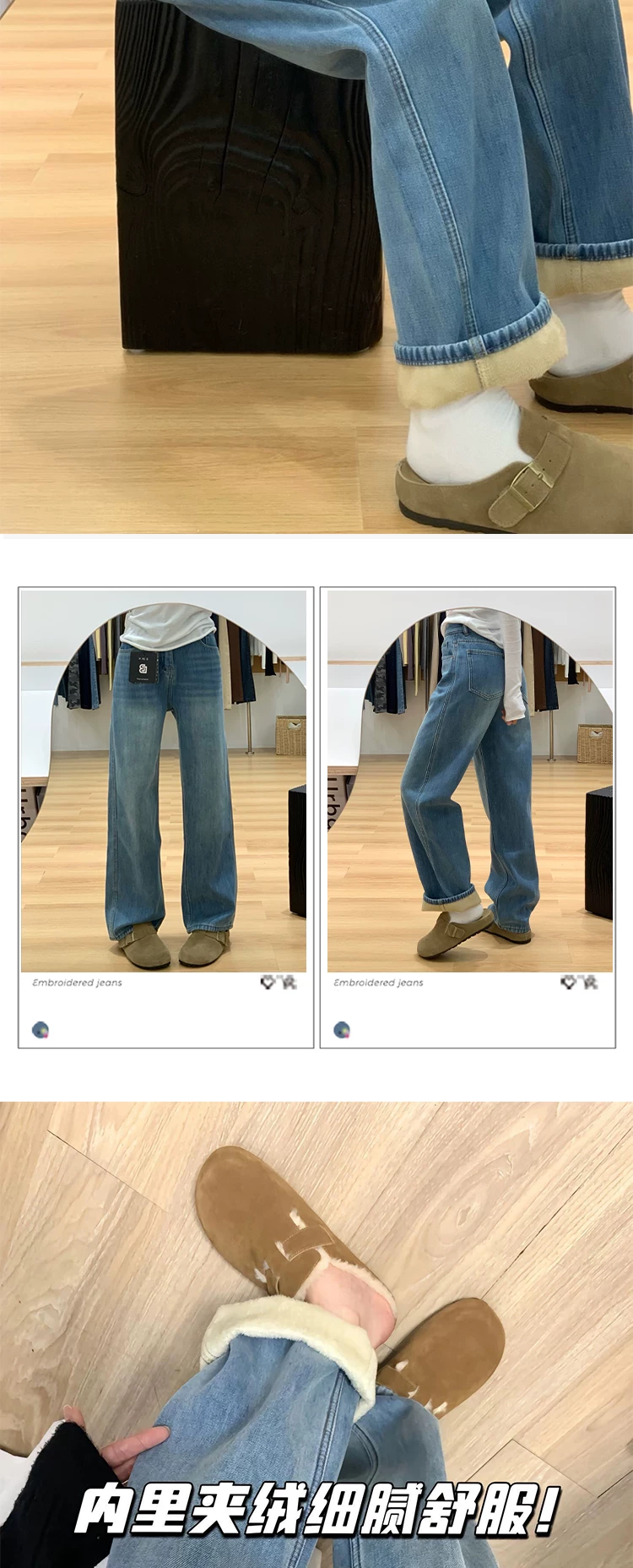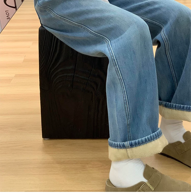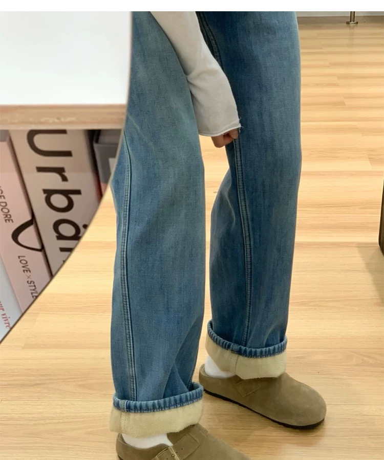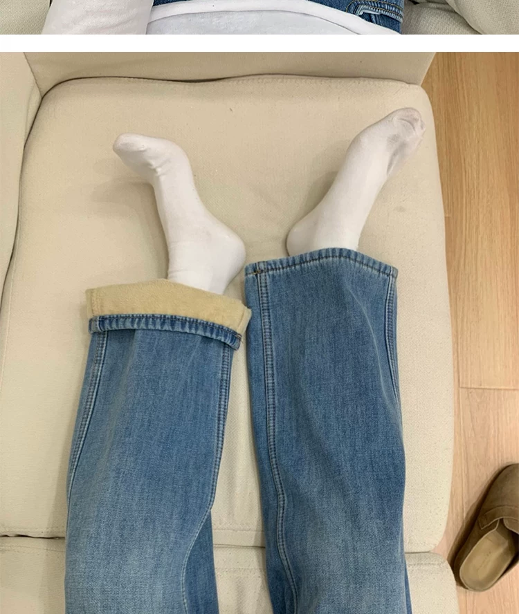 - Quần jean ống thẳng lót lông cừu dành cho nữ, mùa thu đông, cỡ lớn, nhỏ nhắn, lưng cao, giảm béo, dáng quả lê, quần ống rộng dày