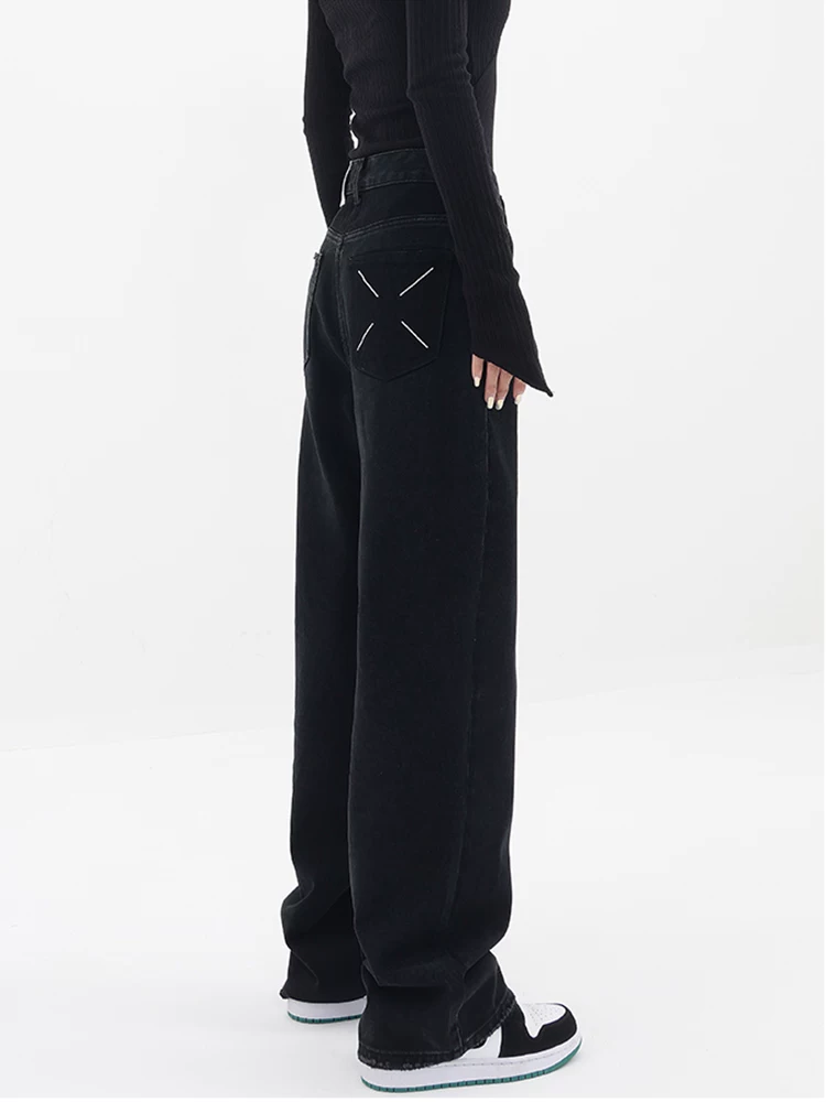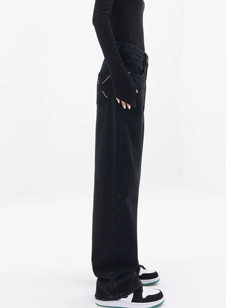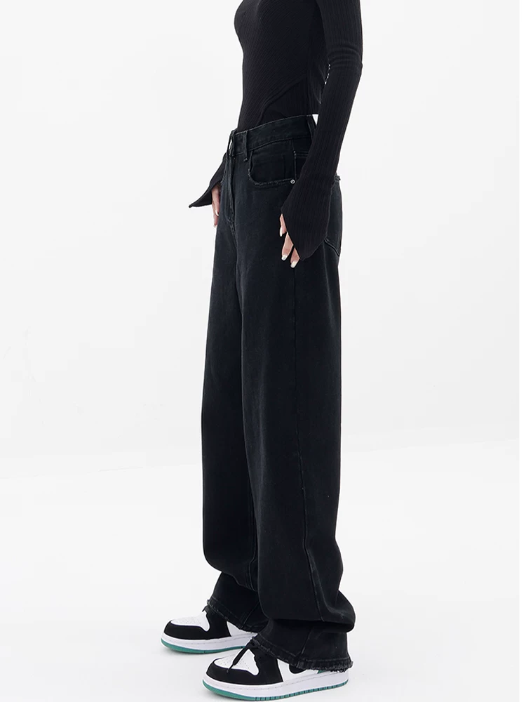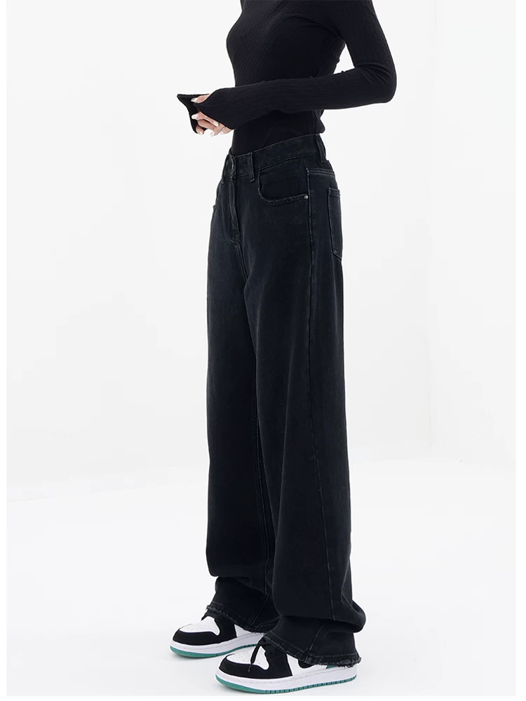 - Quần jean ống thẳng lót lông cừu mùa thu đông dành cho nữ cỡ lớn, cạp cao, dáng rộng, che hông, giảm béo, mềm mại, ống rộng, quần dài đến sàn.