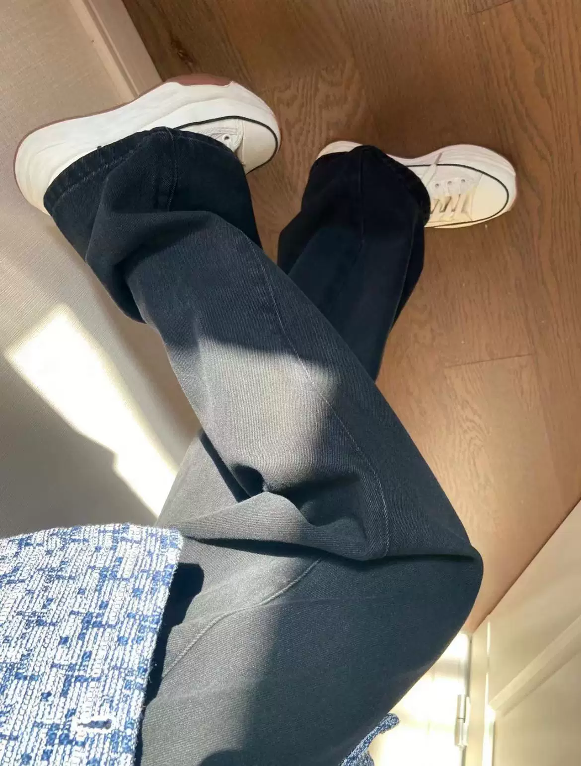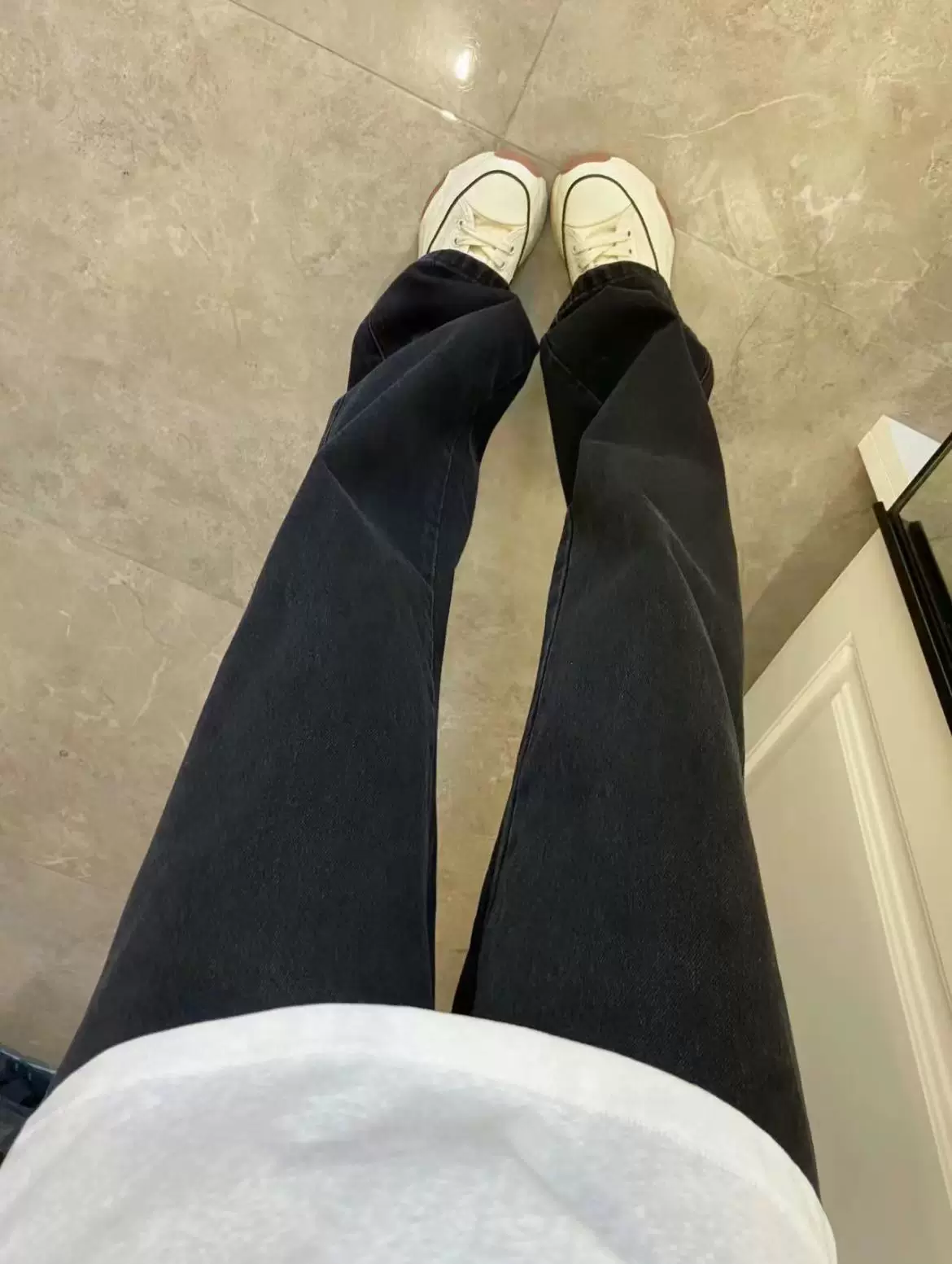 - Quần jean ống thẳng màu đen dáng quả lê dành cho nữ, kiểu dáng đầu thu cỡ lớn, cạp cao, che hông, dáng rộng, quần ống rộng giúp thon gọn