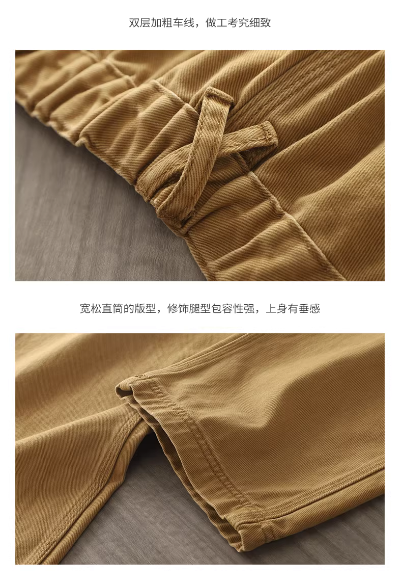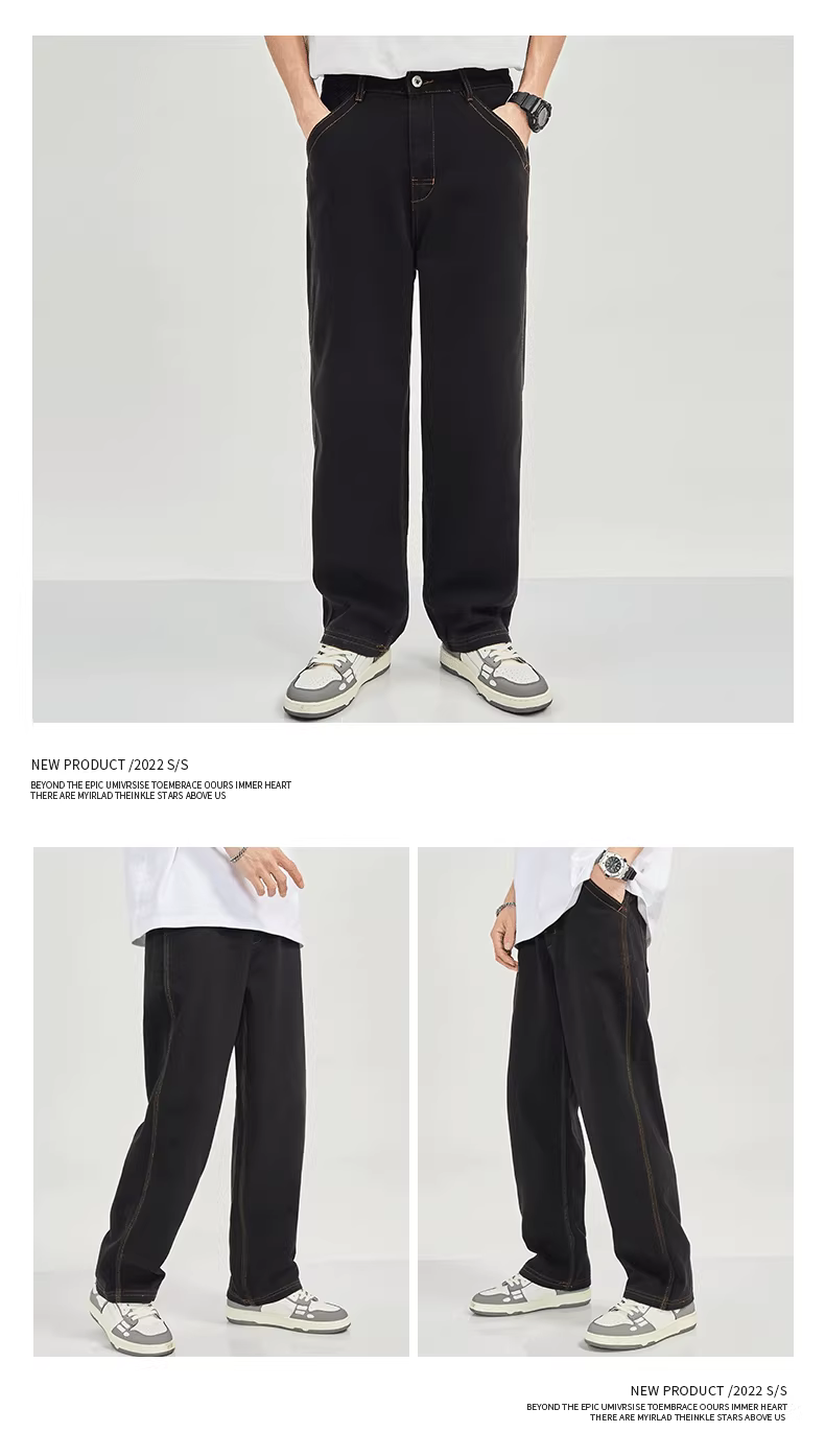 - Quần jean retro Nhật Bản dành cho nam, dáng rộng ống thẳng kiểu mới 2022, quần bố màu xanh đậm đã giặt, quần ống rộng bằng cotton nguyên chất