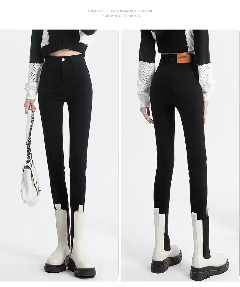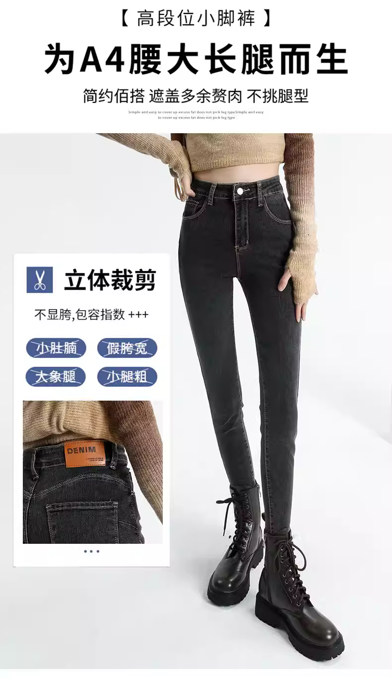 - Quần jean skinny lót lông màu sáng La Chapelle dành cho nữ 2025 mới thu đông, kiểu dáng ôm sát, cạp cao, dáng bút chì, size nhỏ nhắn