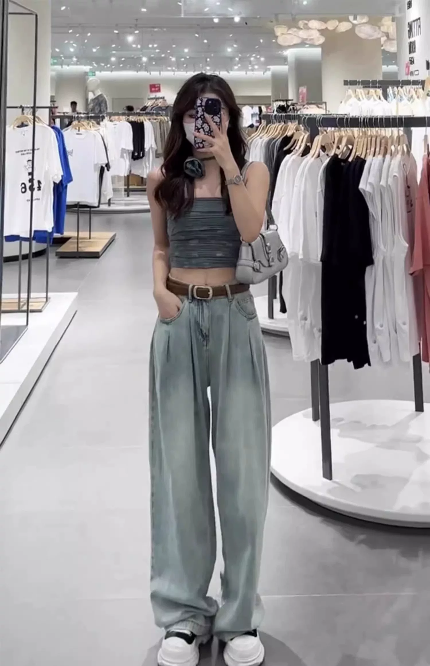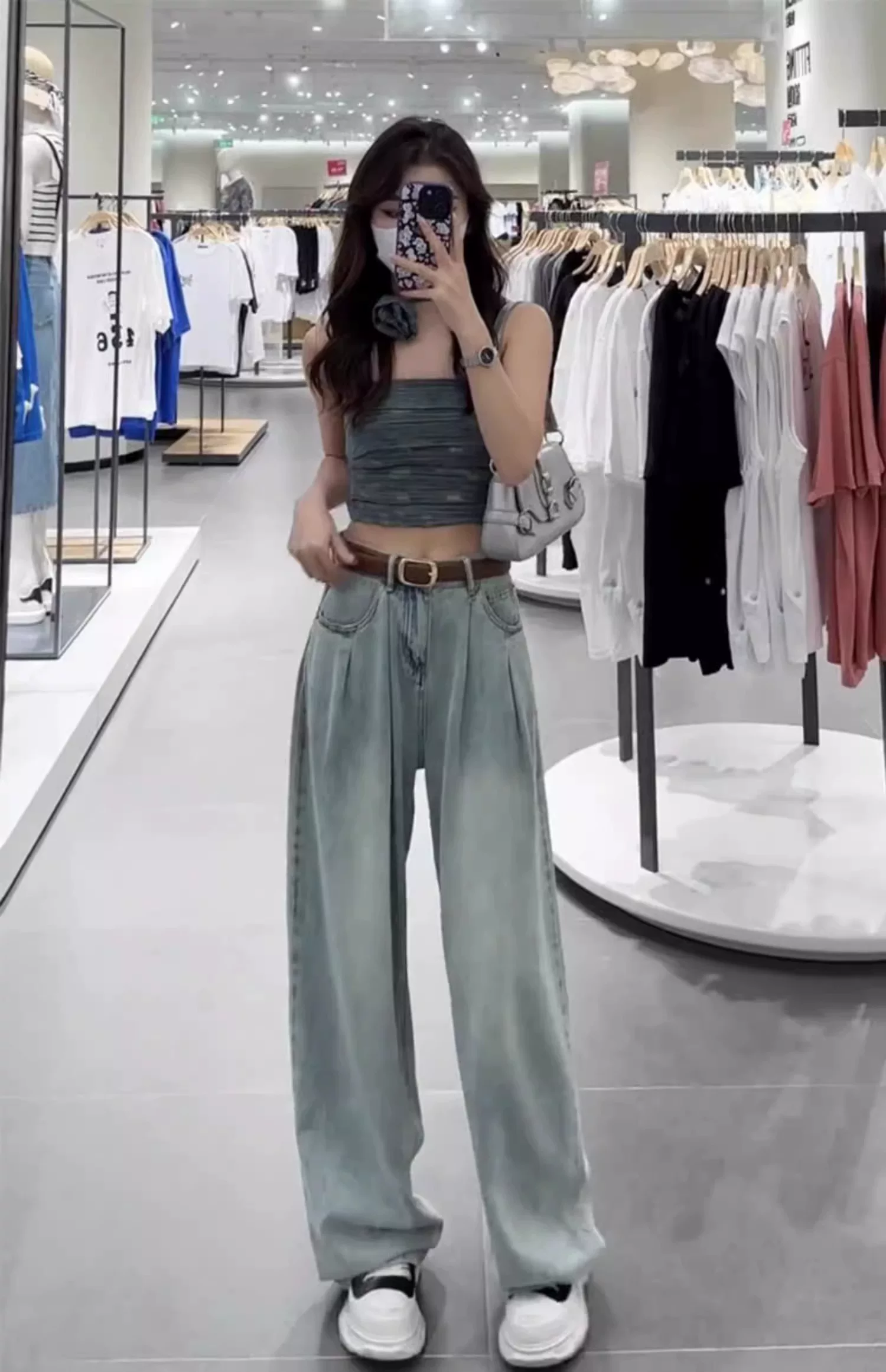 - Quần jean Tencel dáng quả lê dành cho nữ, kiểu dáng mỏng mùa hè, cỡ lớn, lưng cao, dáng rộng, thon gọn, kiểu dáng ôm sát, quần ống rộng mềm mại