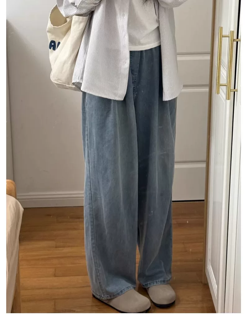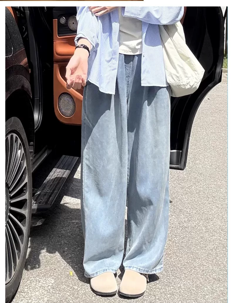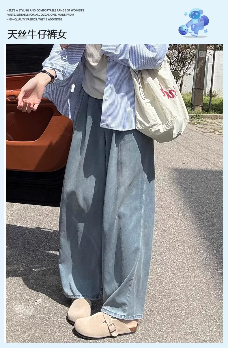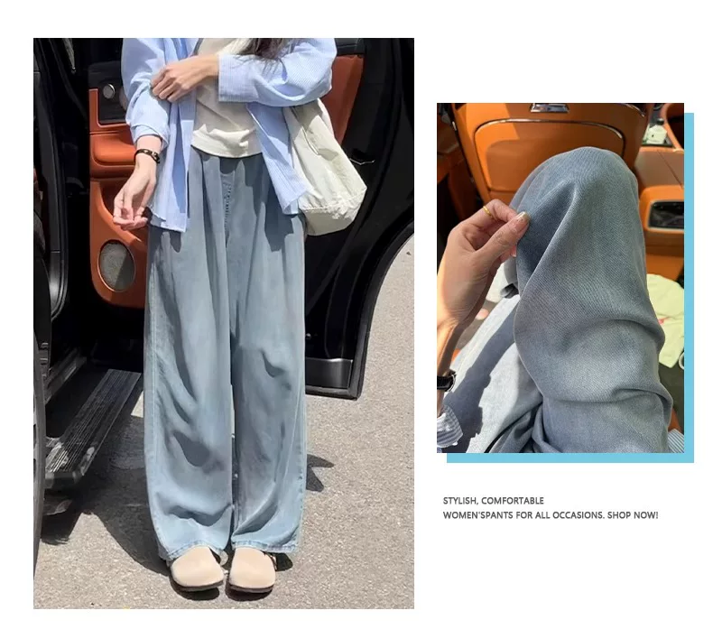 - Quần jean Tencel dành cho nữ, kiểu dáng mỏng mùa hè, cỡ lớn, lưng cao, giảm béo, dáng quả lê, nhỏ nhắn, vải lụa băng, quần ống rộng