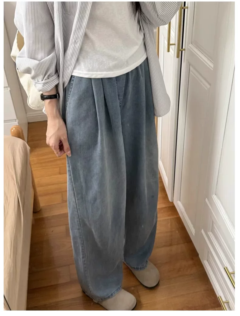 Quần jean Tencel dành cho nữ, kiểu dáng mỏng mùa hè, cỡ lớn, lưng cao, giảm béo, dáng quả lê, nhỏ nhắn, vải lụa băng, quần ống rộng