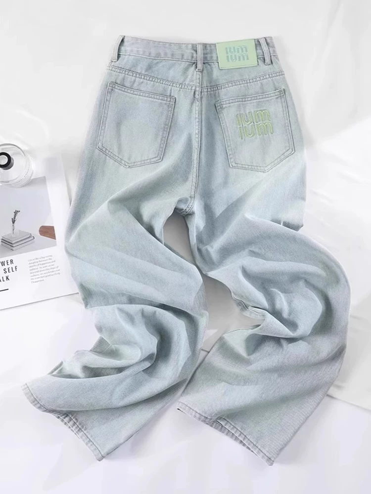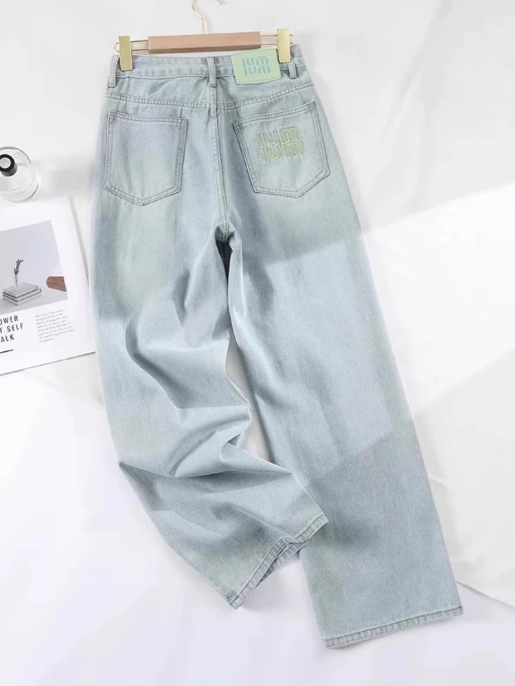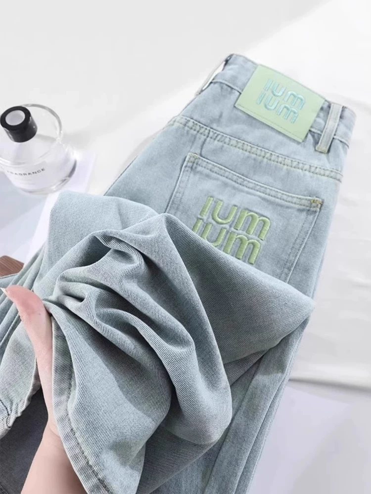 Quần jean Tencel dành cho nữ, kiểu dáng mỏng mùa hè, cỡ lớn, lưng cao, mềm mại, tôn dáng, dành cho người có thân hình quả lê, quần ống rộng dài chạm sàn chất liệu lụa đá