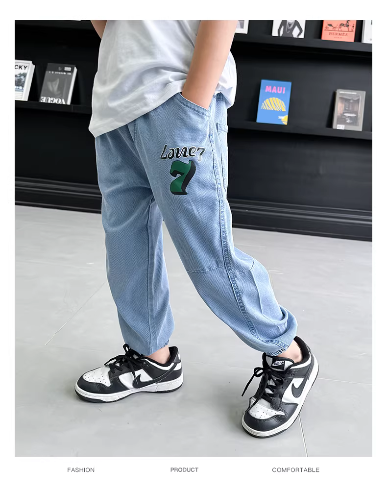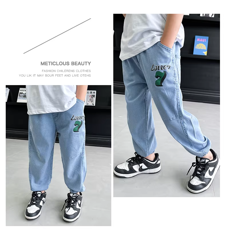 - Quần jean Tencel hè 2025 cho bé trai, quần trẻ em thường ngày, quần dài mỏng, thời trang, chống muỗi