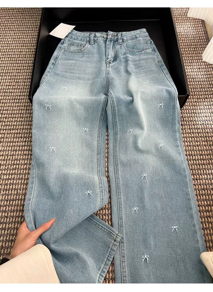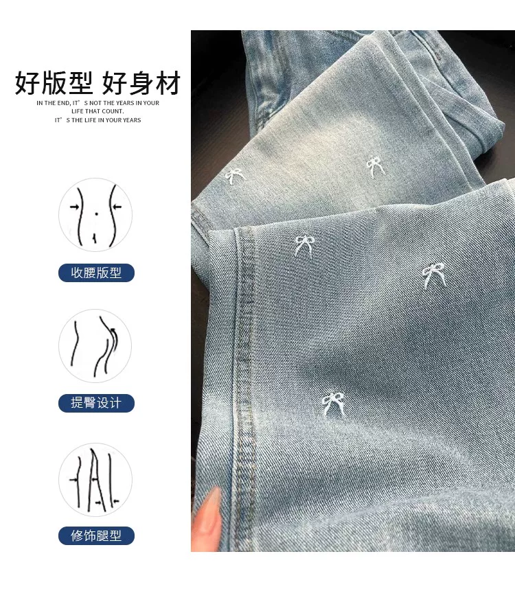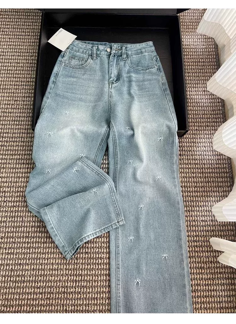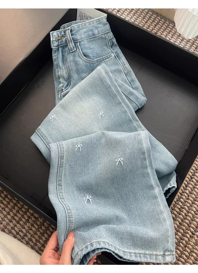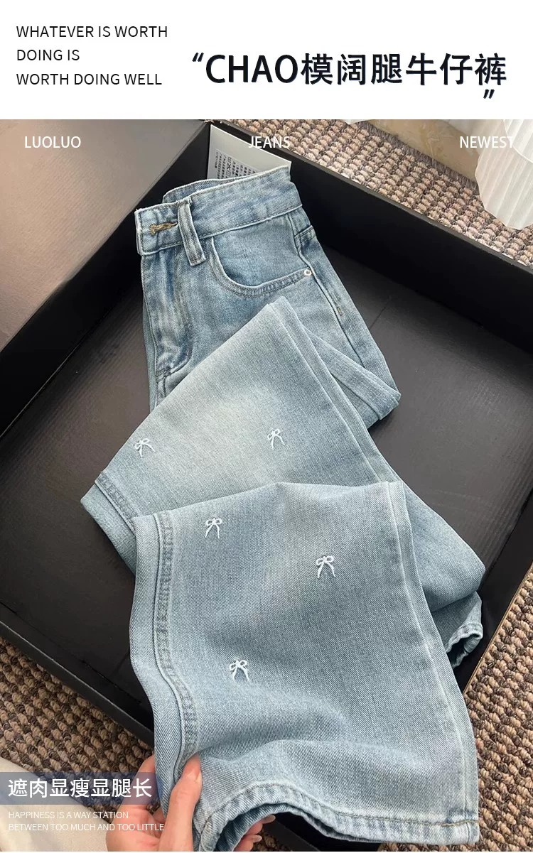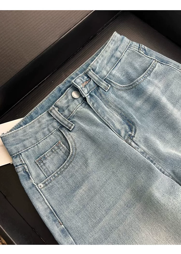 - Quần jean Tencel màu xanh nhạt dành cho nữ, kiểu dáng mỏng mùa hè, cỡ lớn, lưng cao, giảm béo, dáng quả lê, quần ống rộng bằng lụa băng