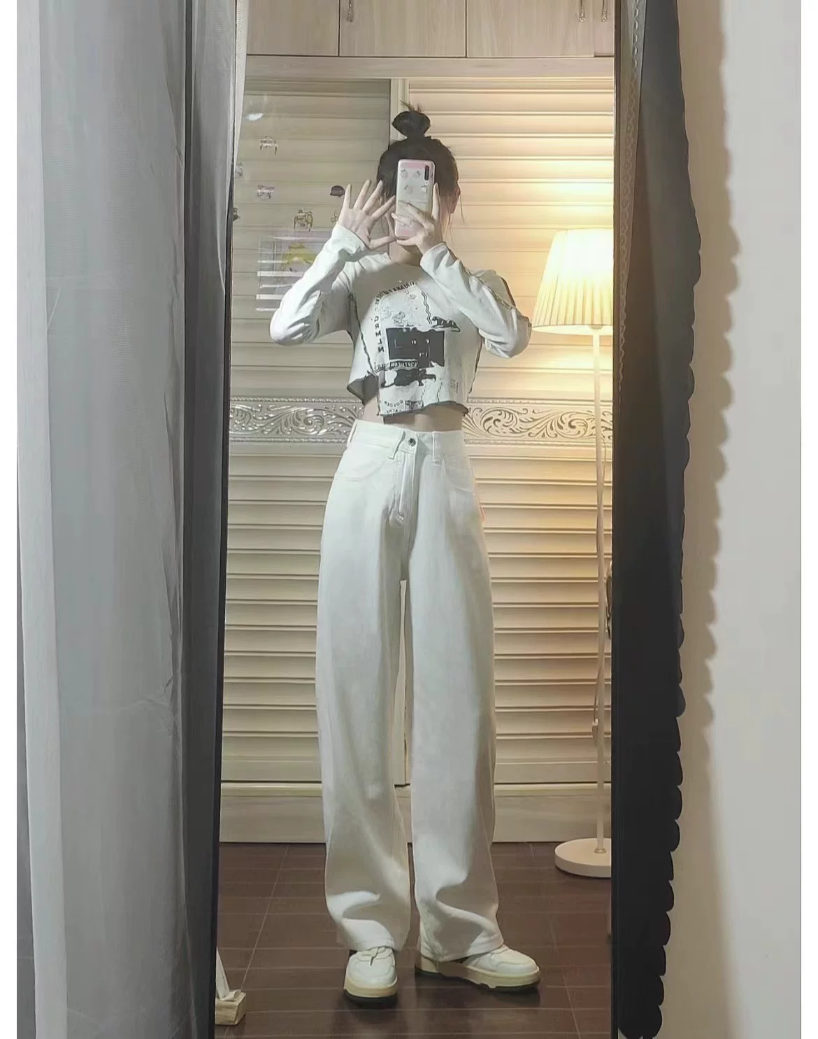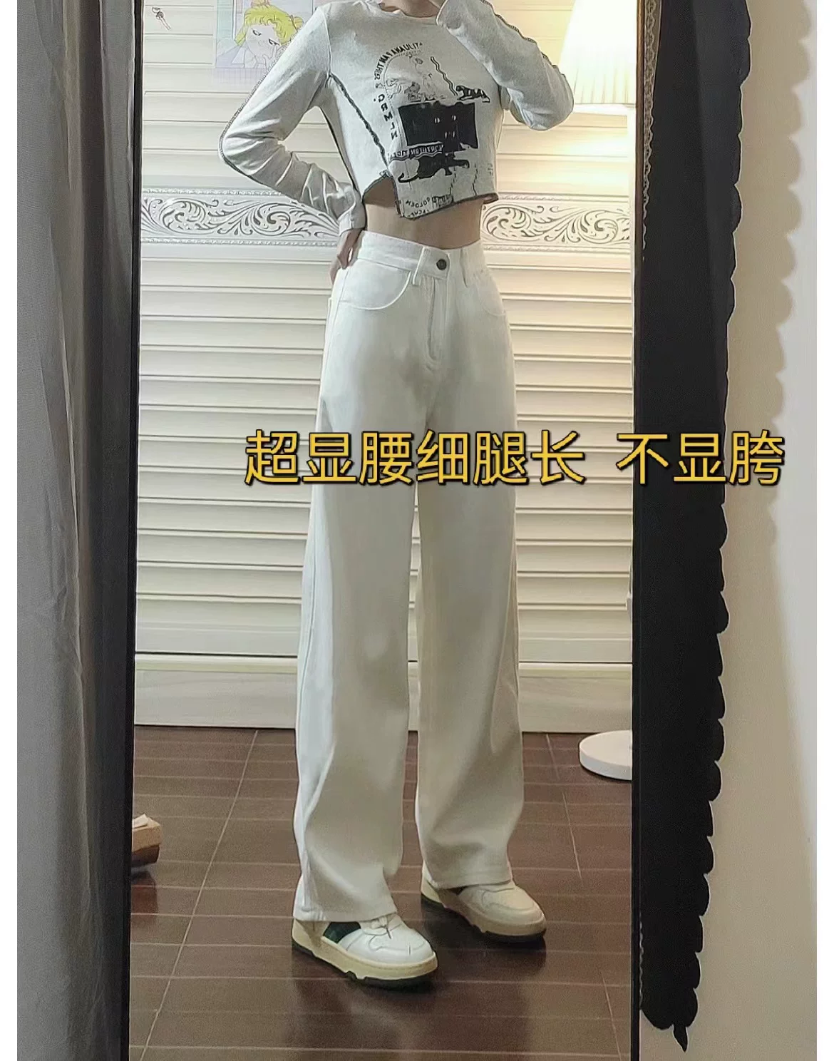 - Quần jean Tencel trắng dành cho nữ, kiểu dáng mỏng mùa hè, cỡ lớn, lưng cao, dáng rộng, tôn dáng, quần ống rộng bằng vải lụa băng mềm mại.