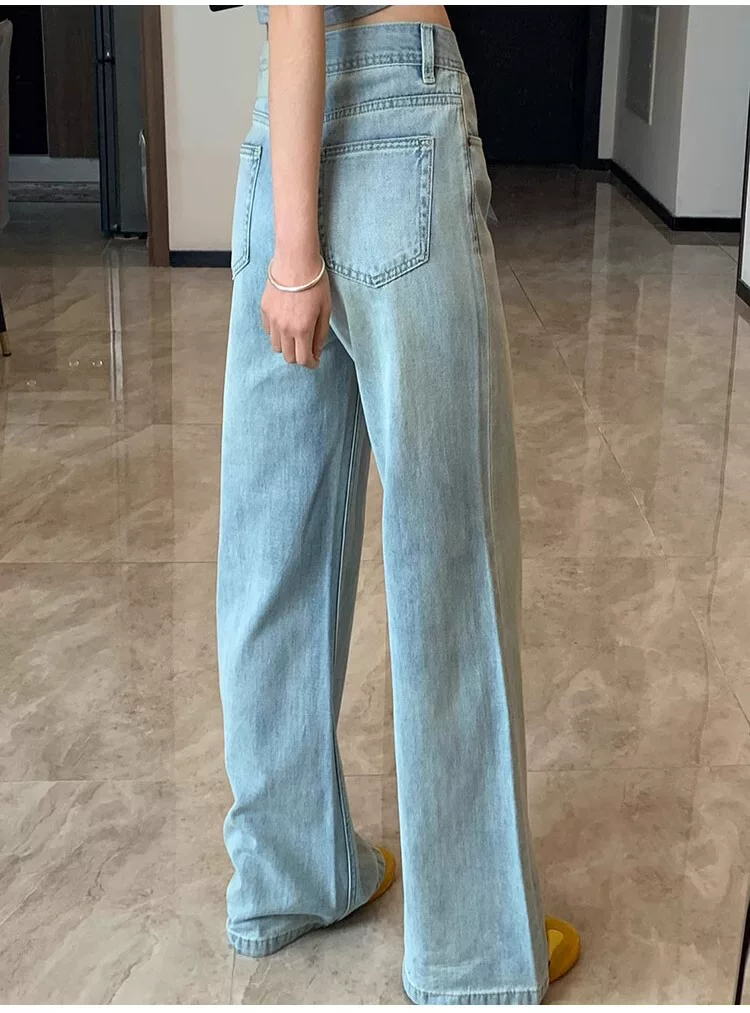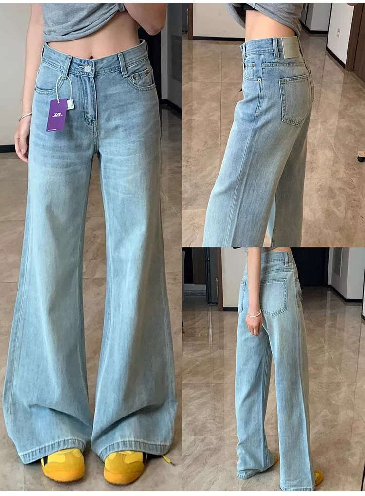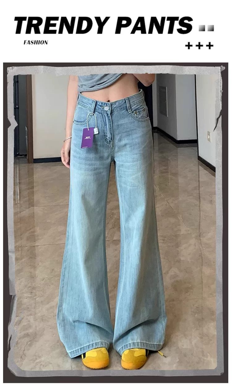 - Quần jean Tencel xanh nhạt không bó sát dành cho nữ, cỡ lớn mùa hè, lưng cao, dáng rộng, tôn dáng, quần ống loe