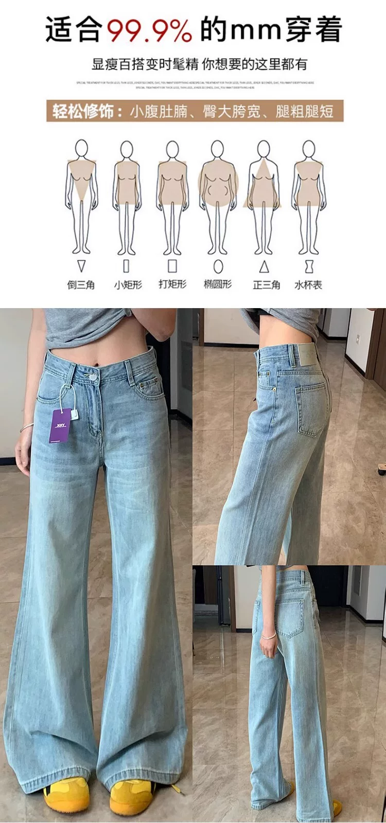 Quần jean Tencel xanh nhạt không bó sát dành cho nữ, cỡ lớn mùa hè, lưng cao, dáng rộng, tôn dáng, quần ống loe