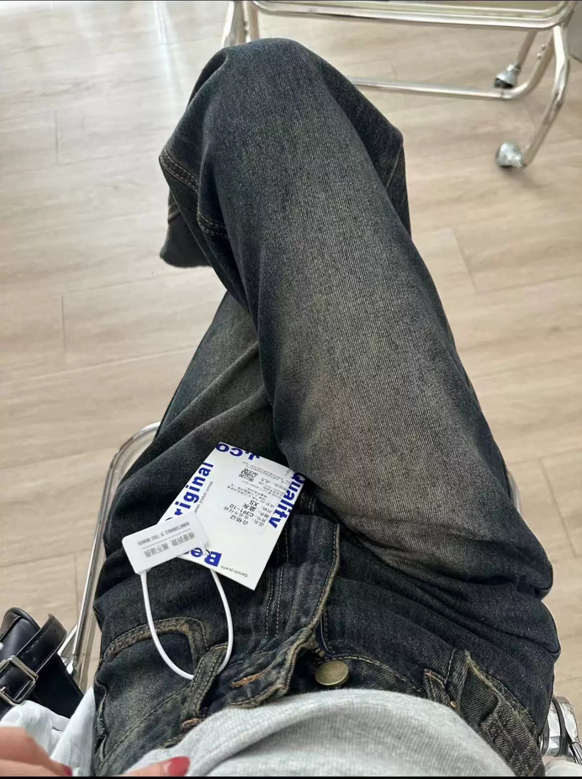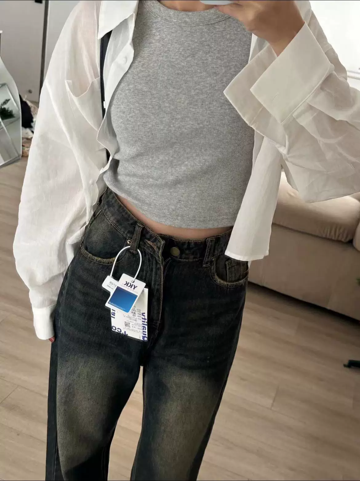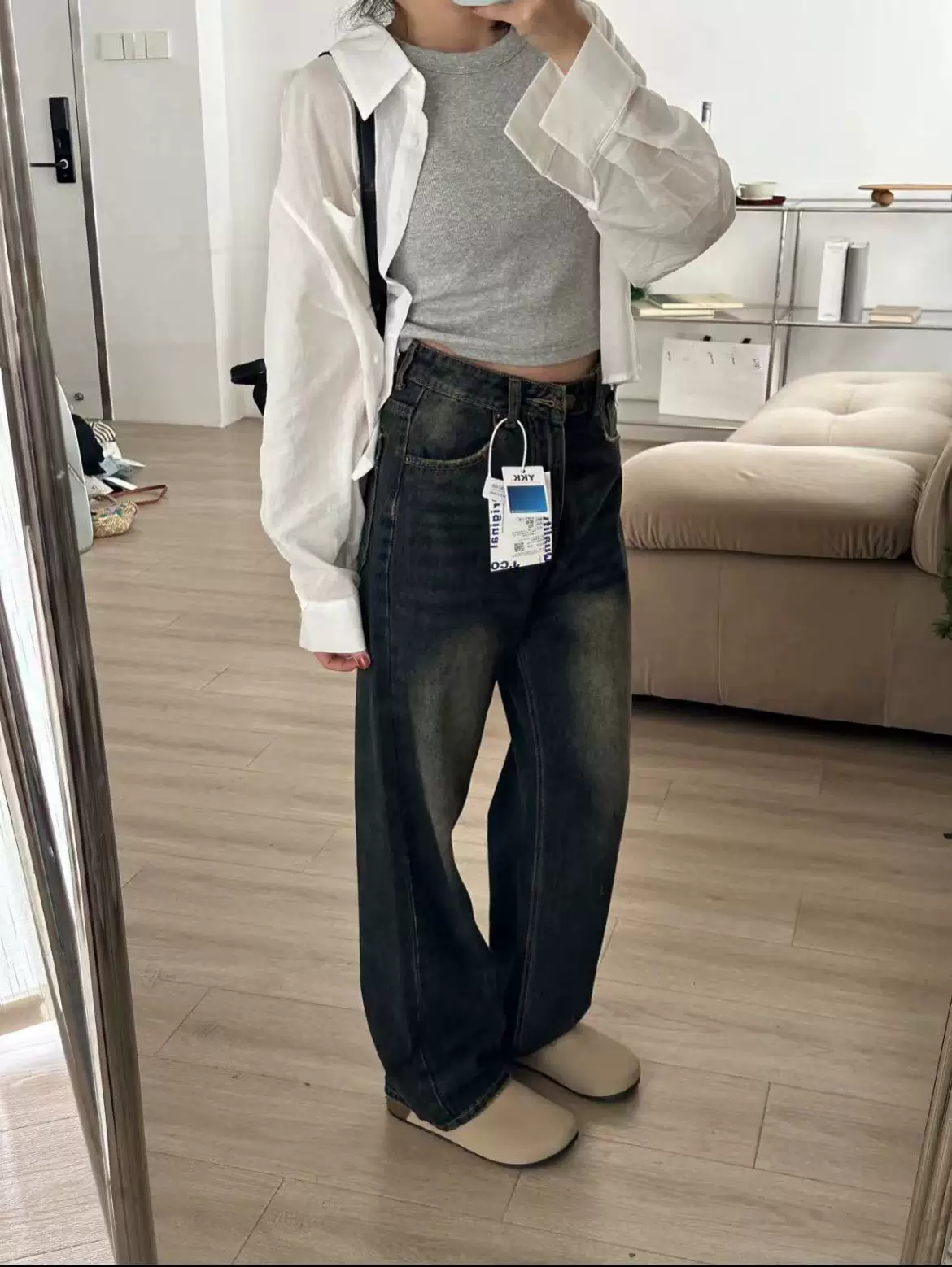 - Quần jean xanh cổ điển dành cho nữ, phong cách mùa thu mới, cỡ lớn, lưng cao, dáng rộng, thon gọn, dáng quả lê, quần ống rộng thẳng