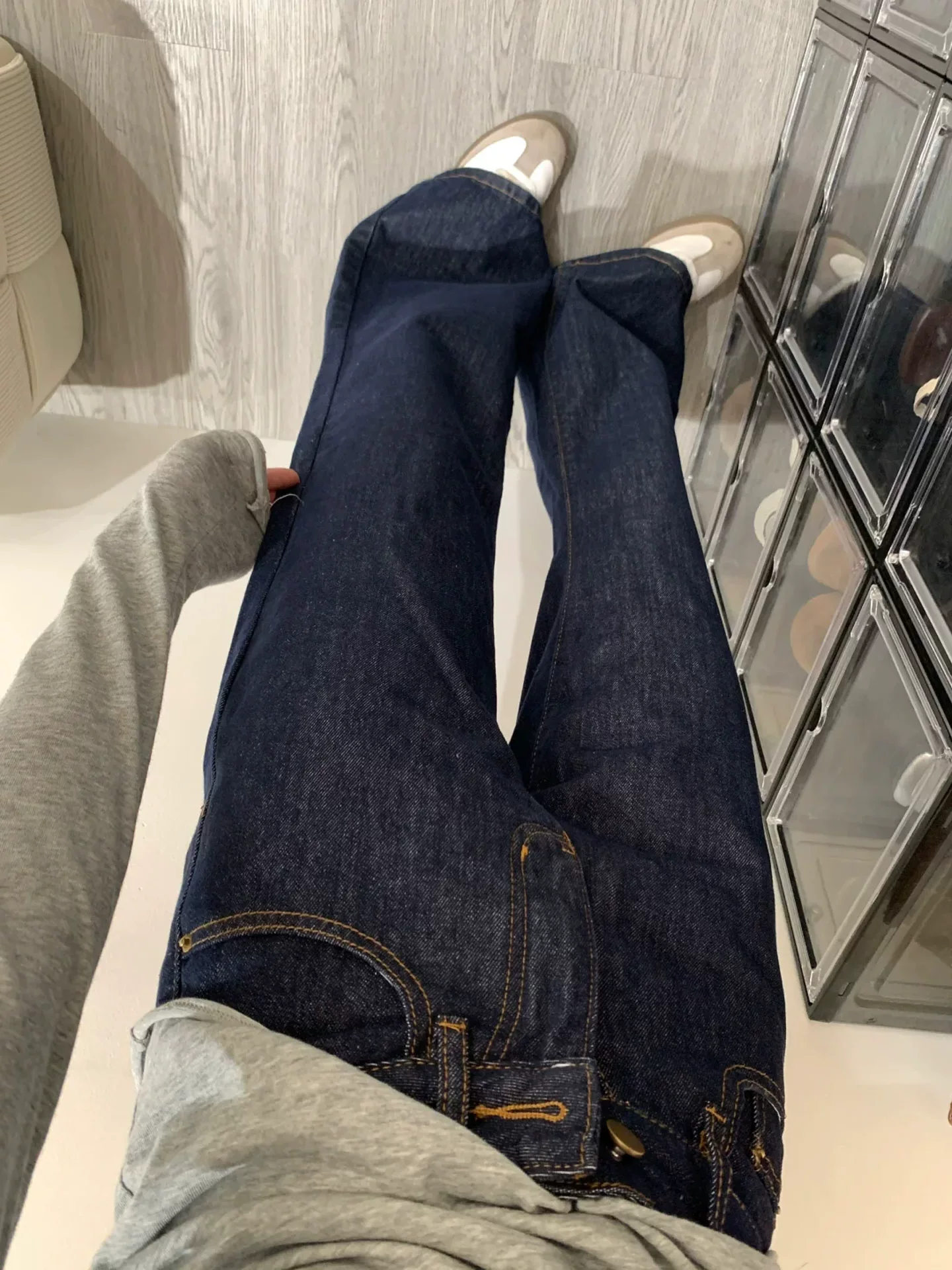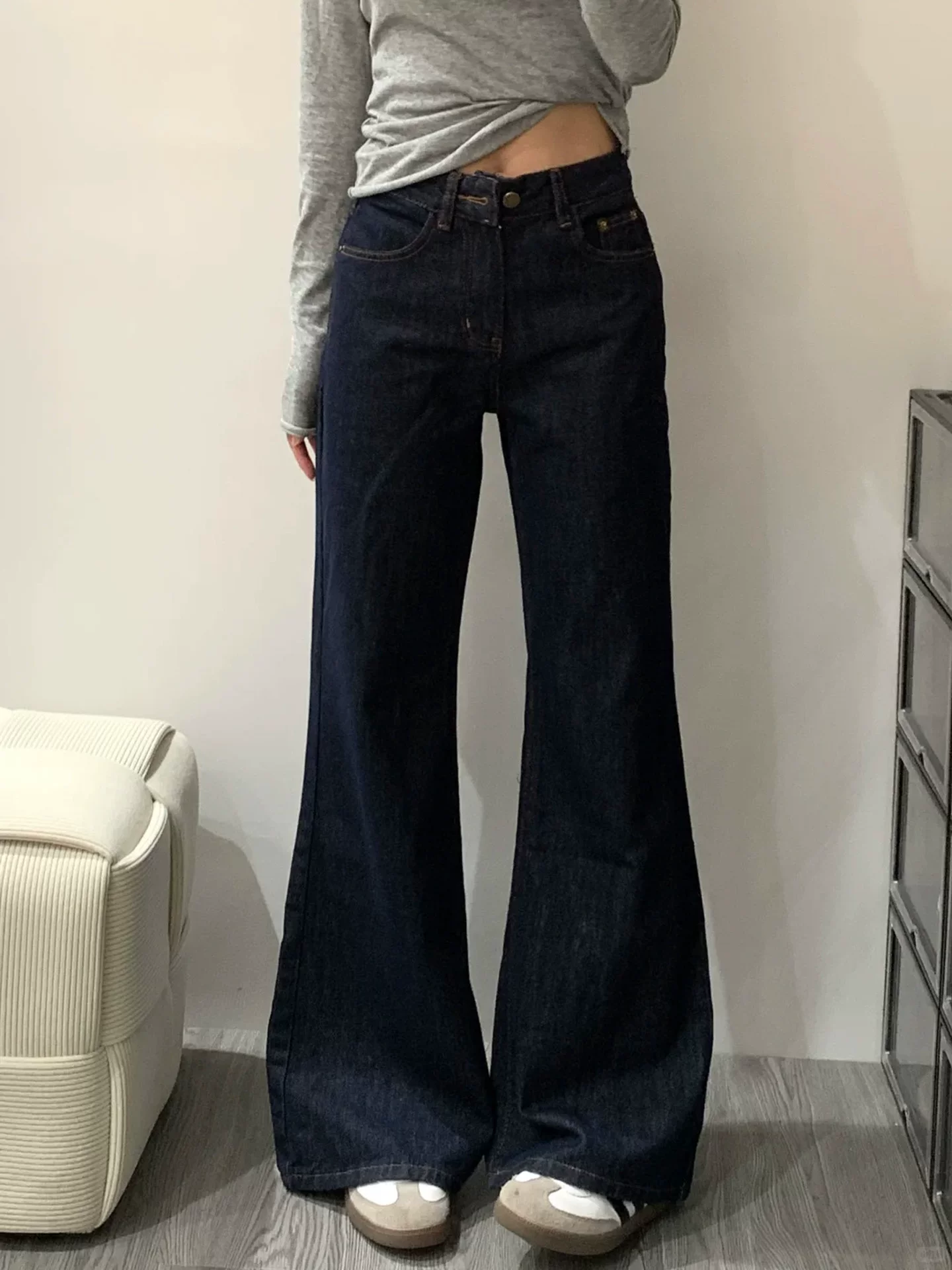 - Quần jean xanh đậm dáng loe nữ, kiểu mới thu đông 2025, size lớn, cạp cao, rộng rãi, tôn dáng.