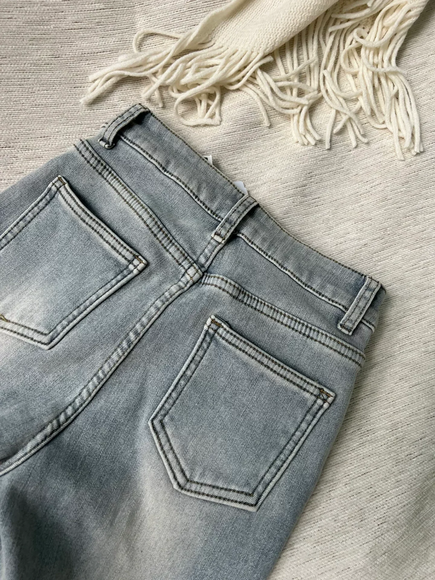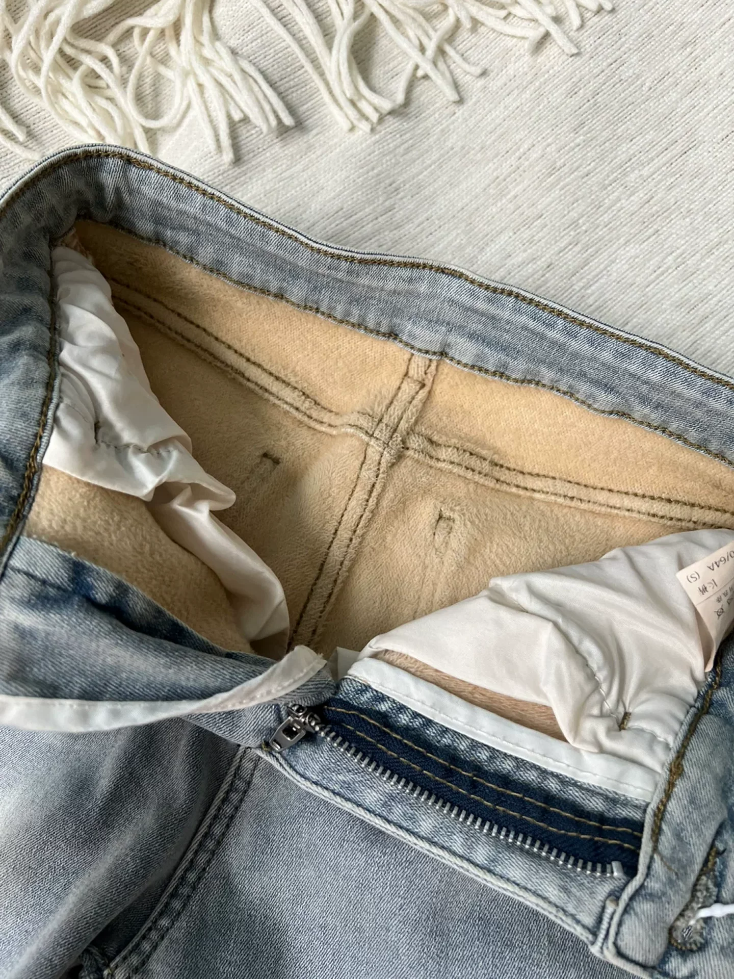 - Quần jean xanh nhạt dáng loe dành cho nữ, mùa thu đông, cỡ lớn, lót lông cừu, dày dặn, cạp cao, co giãn, tôn dáng, quần ống loe