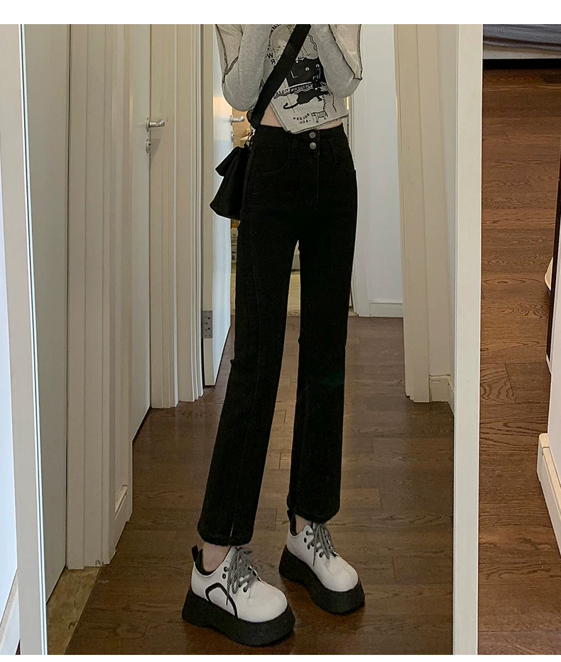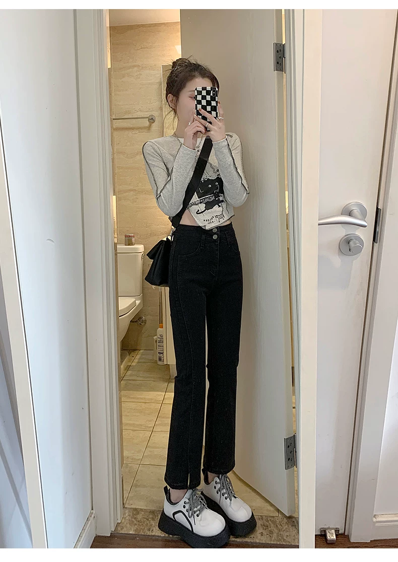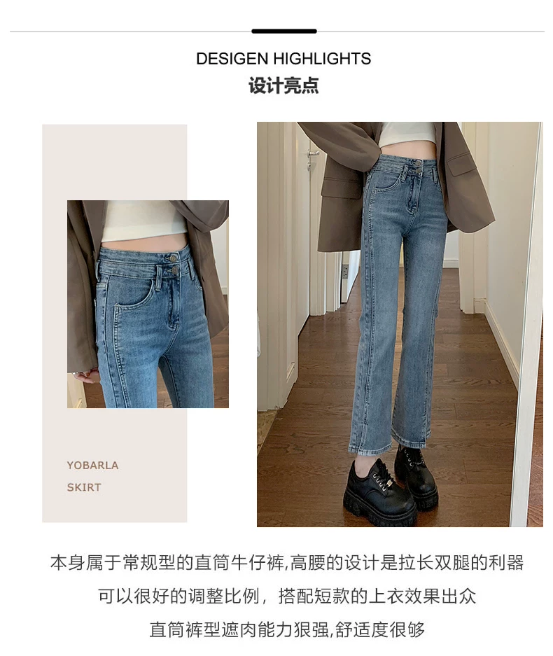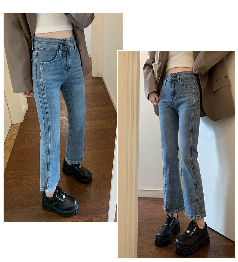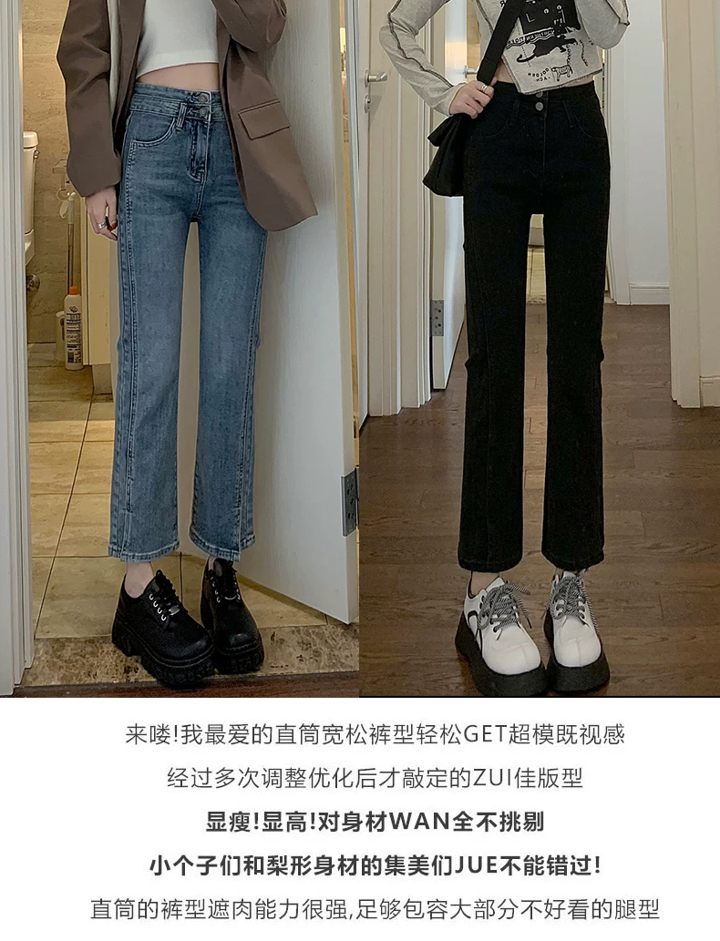 - Quần jean xẻ tà dáng rộng cho nữ, trang phục đầu xuân, quần ống đứng co giãn cao cấp, cạp cao, tôn dáng, kiểu dáng ôm sát, quần ống thuốc lá ngắn, hợp thời trang