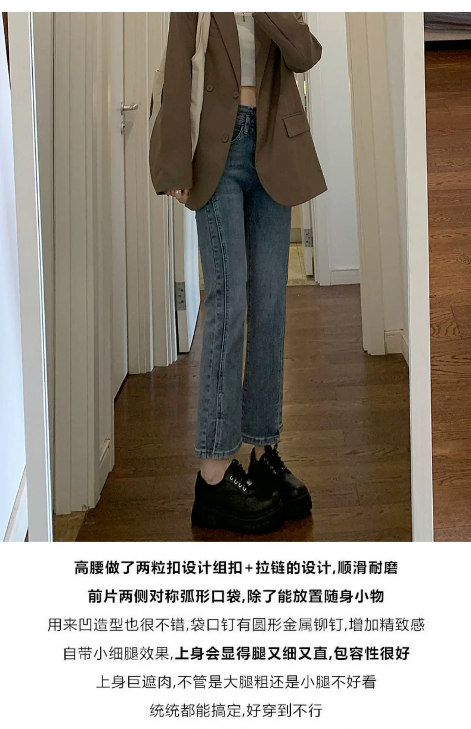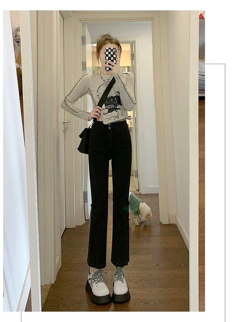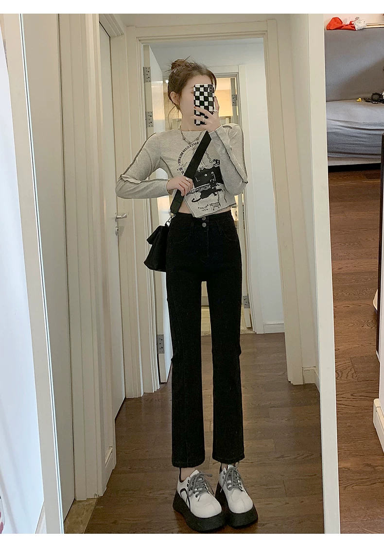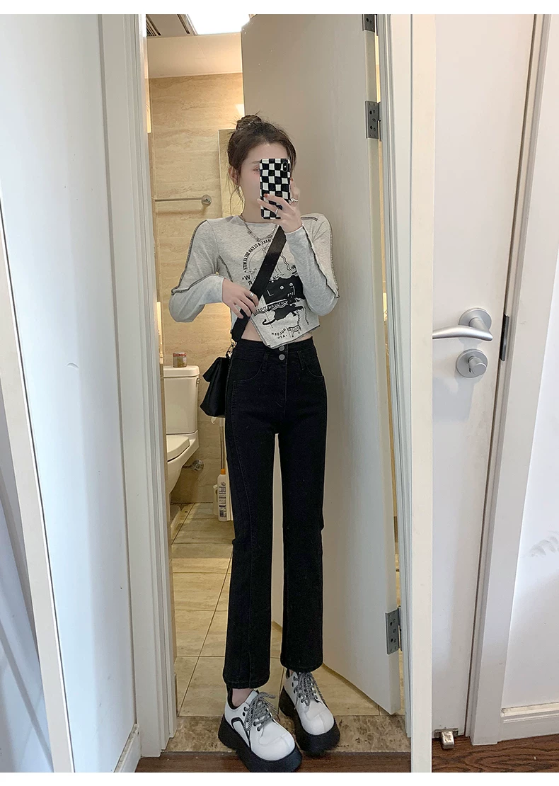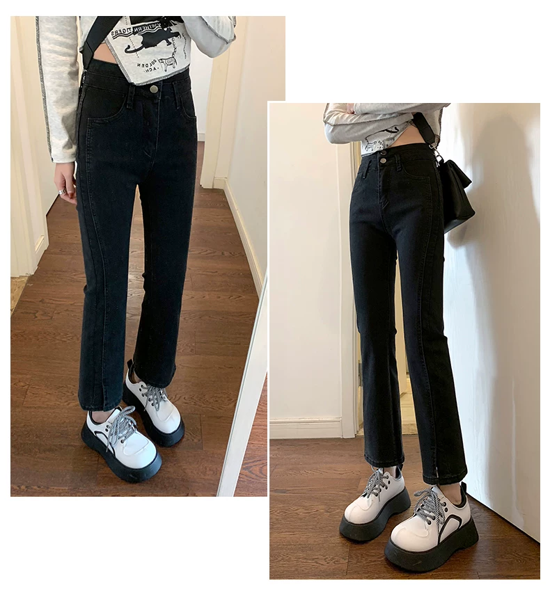 - Quần jean xẻ tà dáng rộng cho nữ, trang phục đầu xuân, quần ống đứng co giãn cao cấp, cạp cao, tôn dáng, kiểu dáng ôm sát, quần ống thuốc lá ngắn, hợp thời trang