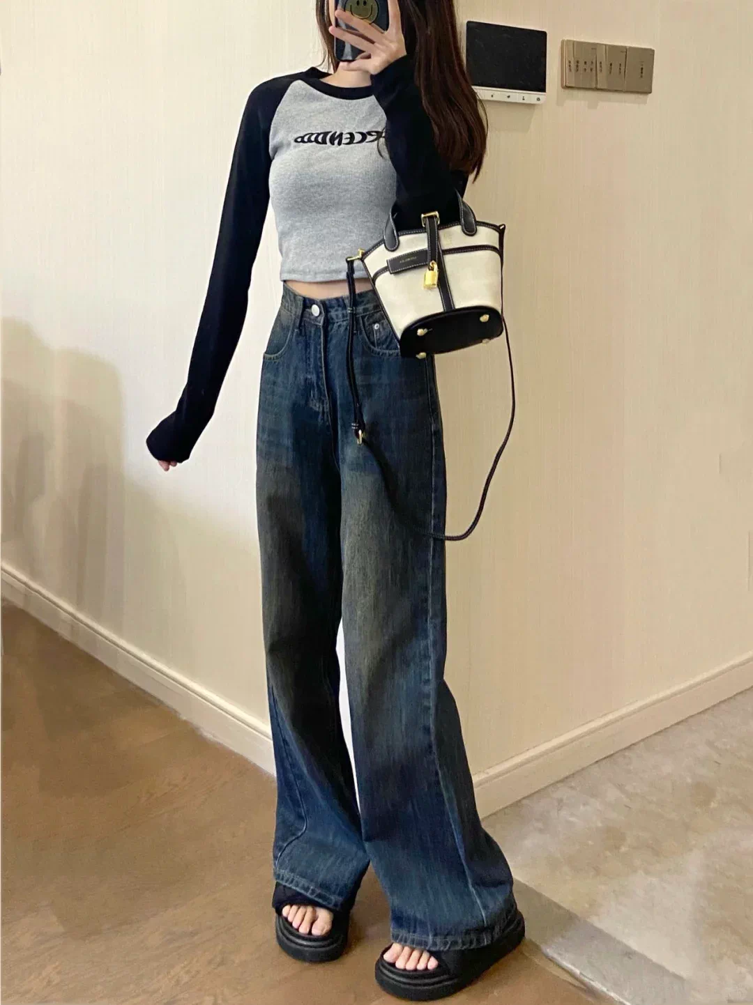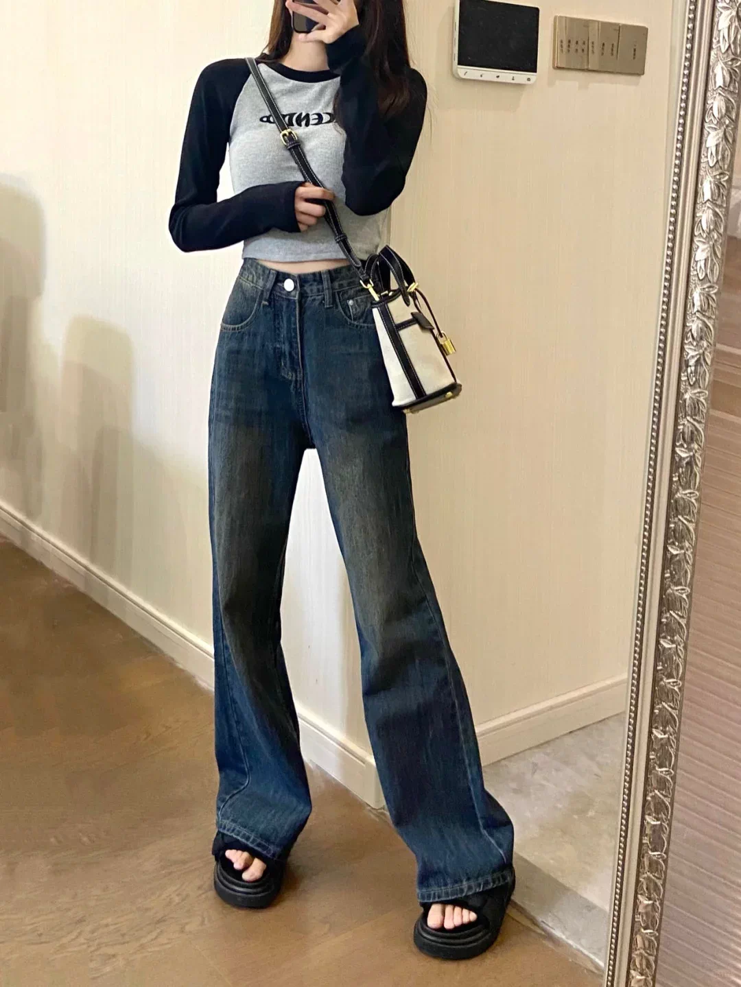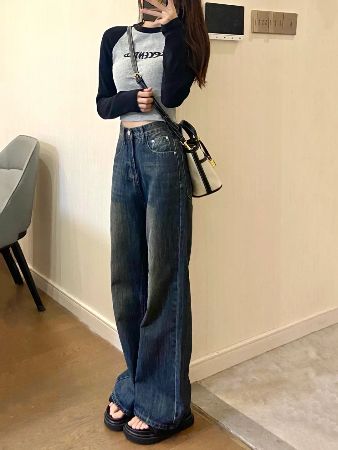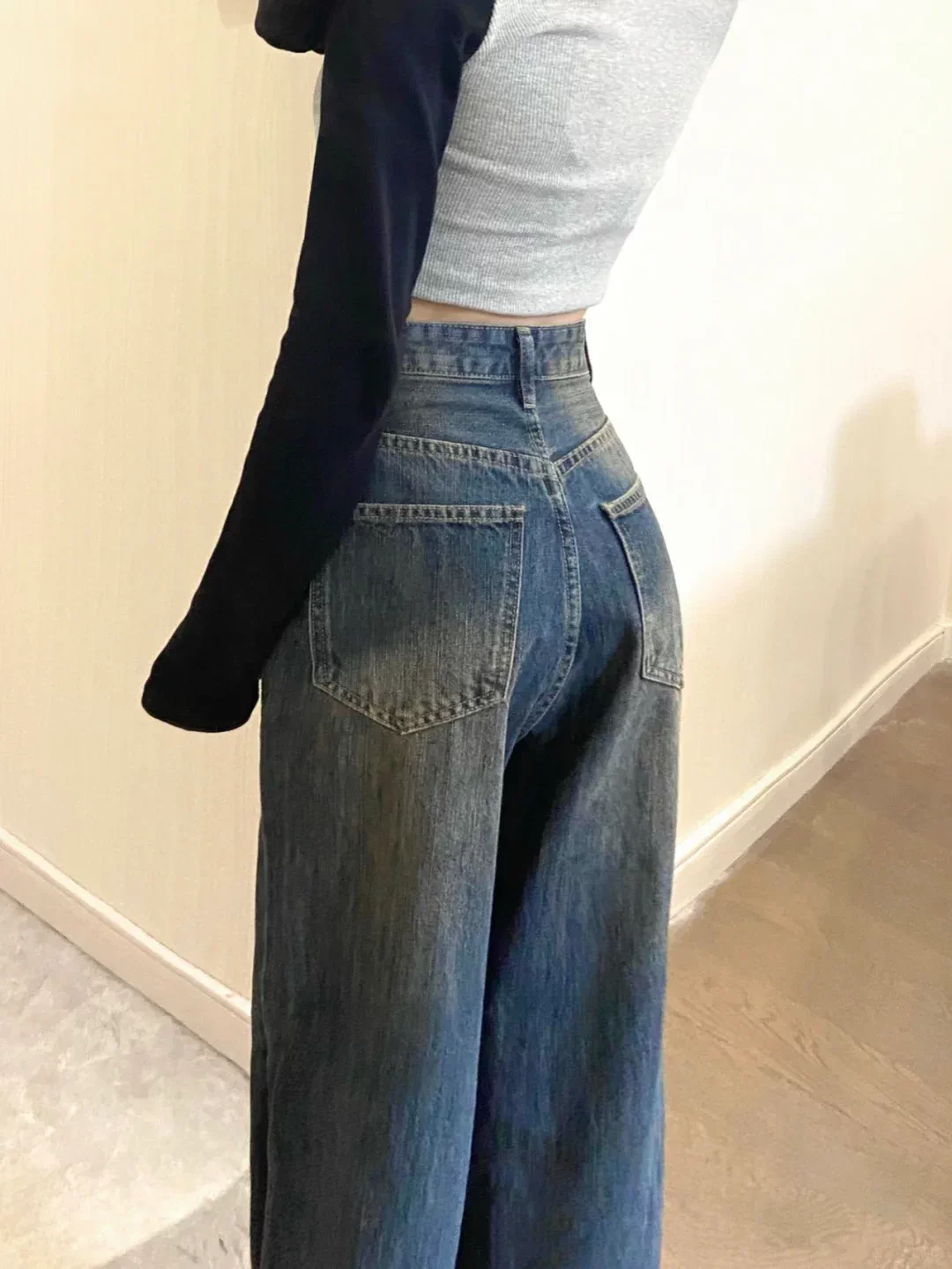- Quần jean xòe lót lông màu xanh cổ điển dành cho nữ, cỡ lớn mùa đông, cạp cao, dáng rộng, che hông, quần ống rộng giúp thon gọn