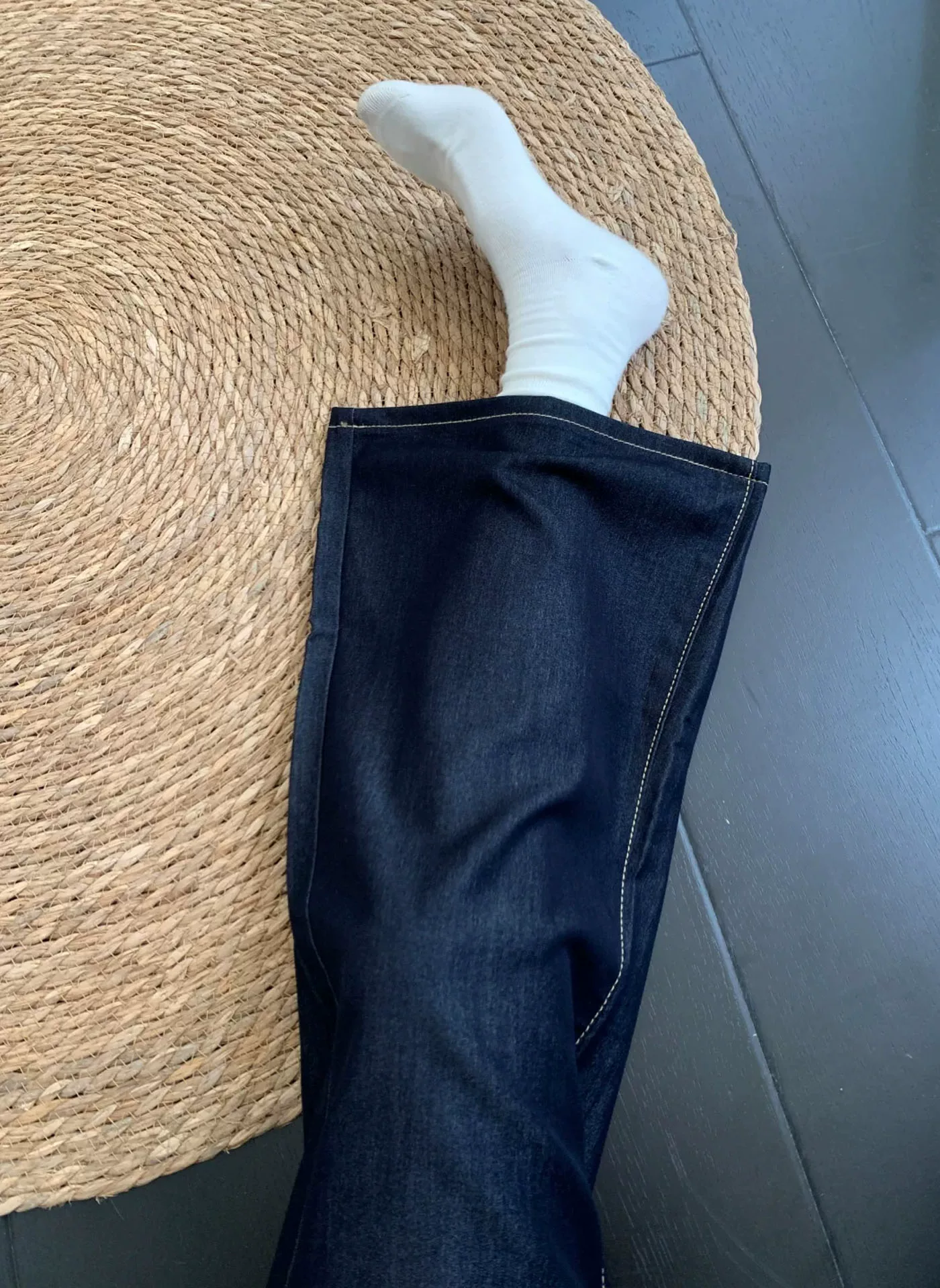 - Quần jean xòe màu xanh đậm chất liệu Tencel dành cho nữ, kiểu dáng mỏng mùa hè 2025, size lớn, cạp cao, chất liệu mềm mại, tôn dáng, kiểu dáng chuông.