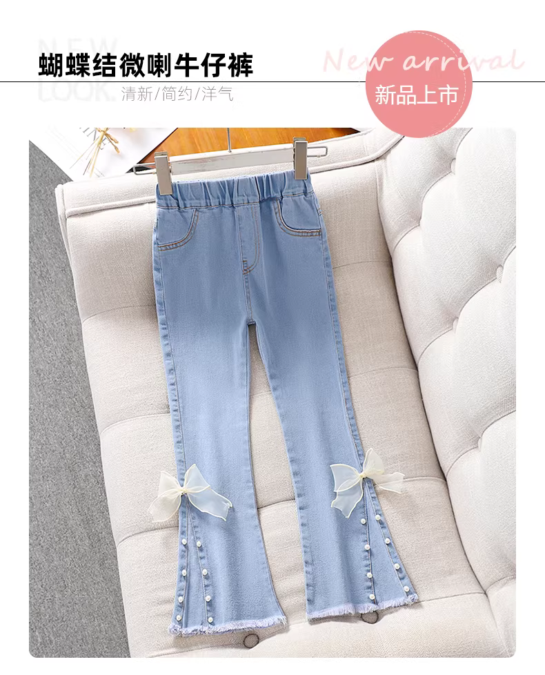 - Quần jeans bé gái xuân thu 2025 kiểu mới quần loe trẻ em mùa thu quần chuông bé gái thời trang kiểu dáng mỏng