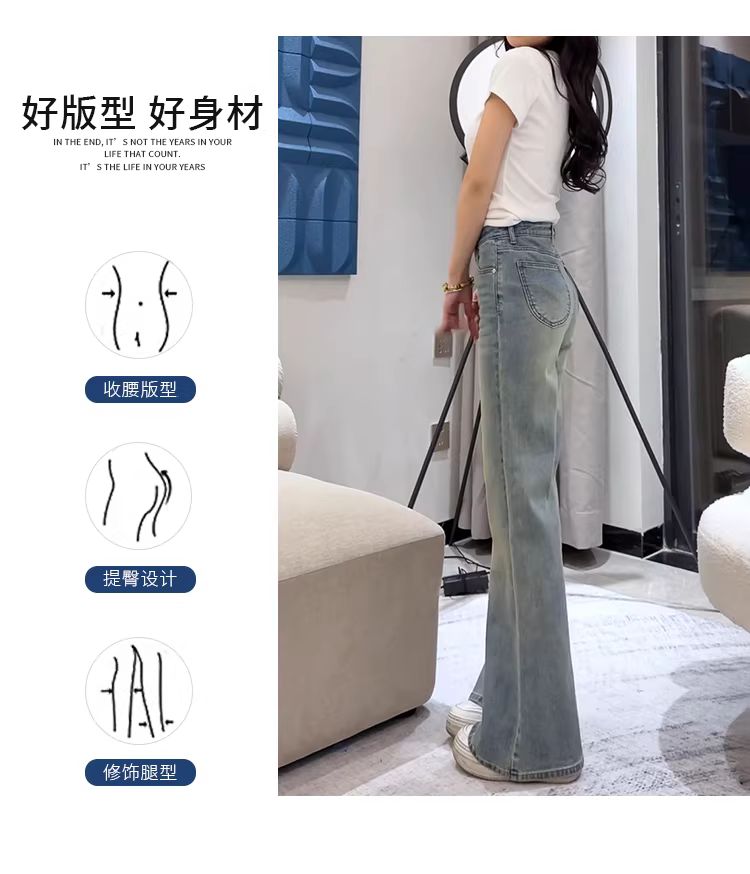 - Quần jeans bootcut La Chapelle kiểu retro dành cho nữ, mẫu mới thu đông 2025, cạp cao, chất liệu co giãn, dáng loe