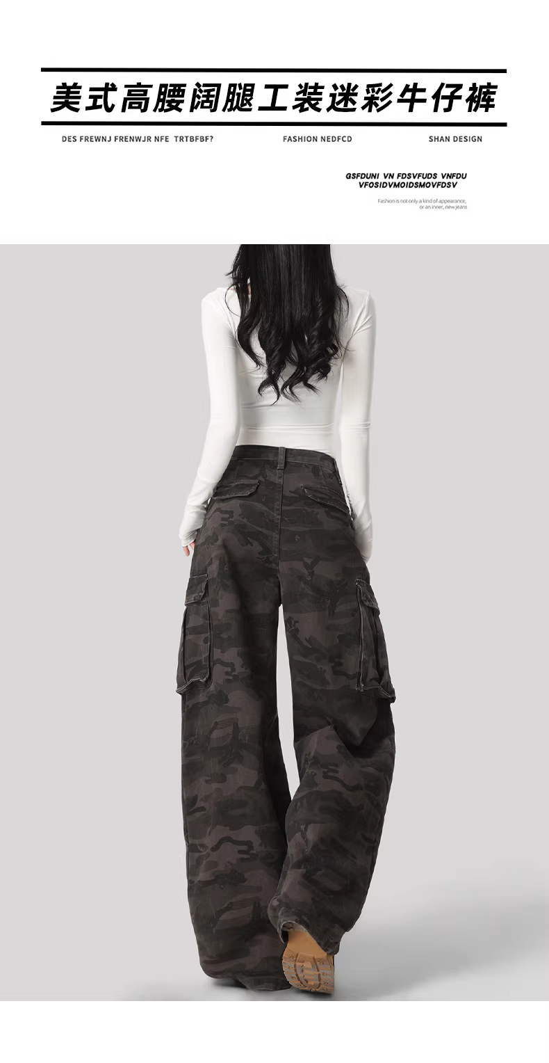 Quần jeans cargo ống rộng kiểu Mỹ La Chapelle dành cho nữ, mẫu mới thu đông 2025, cạp cao, dáng rộng, thẳng