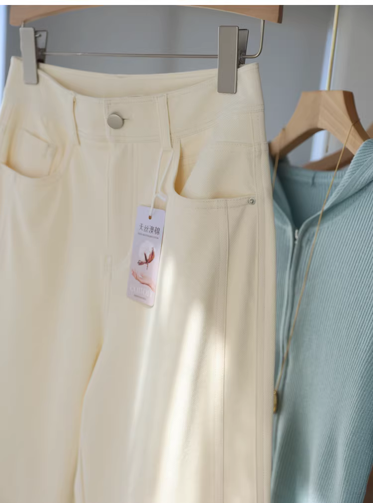 Quần jeans cotton Úc + Tencel mềm mại, co giãn cao, cạp cao, dáng ôm, ống đứng, ống rộng dành cho nữ